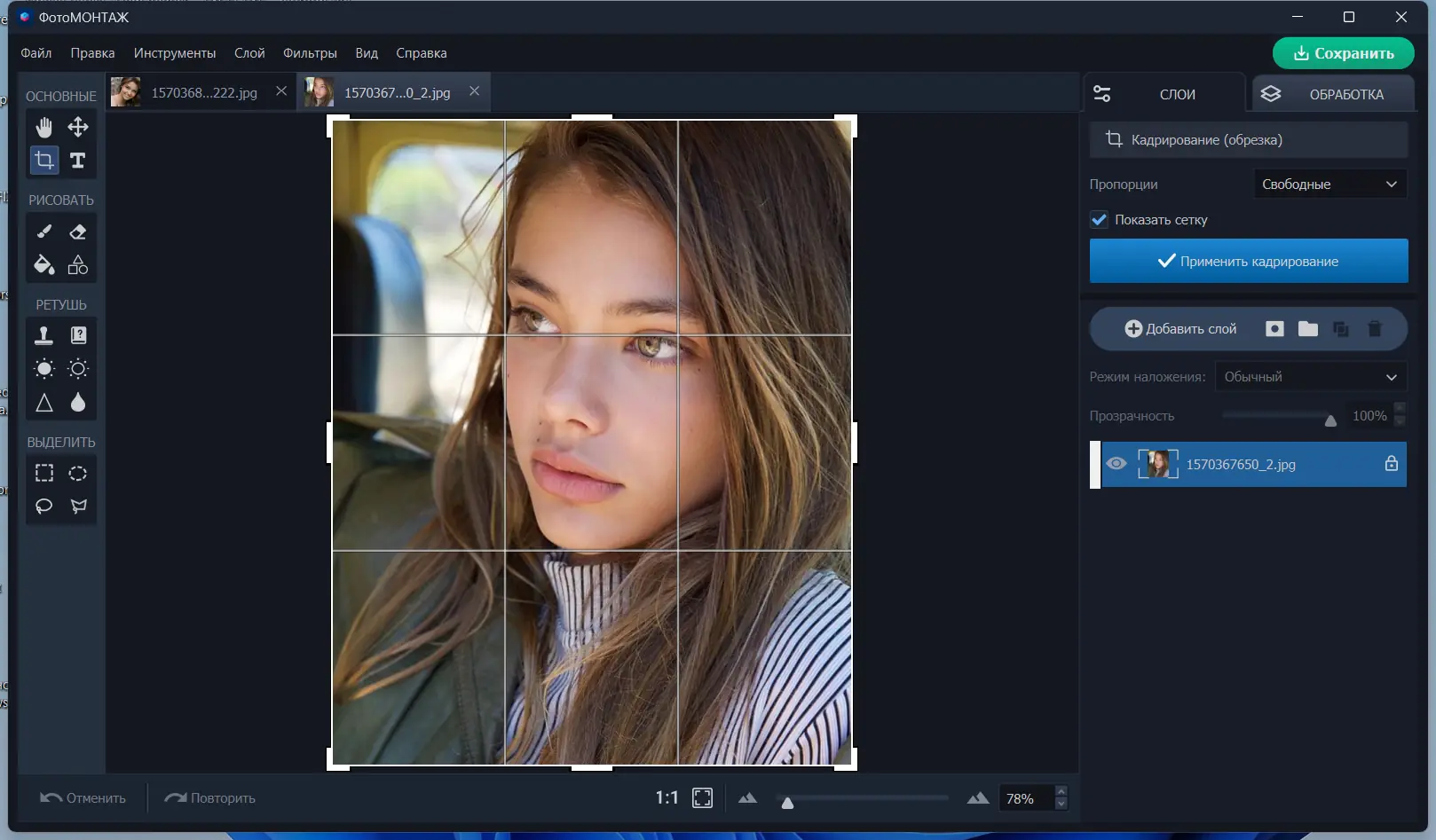 - Качественный фотомонтаж с возможностью соединения нескольких изображений