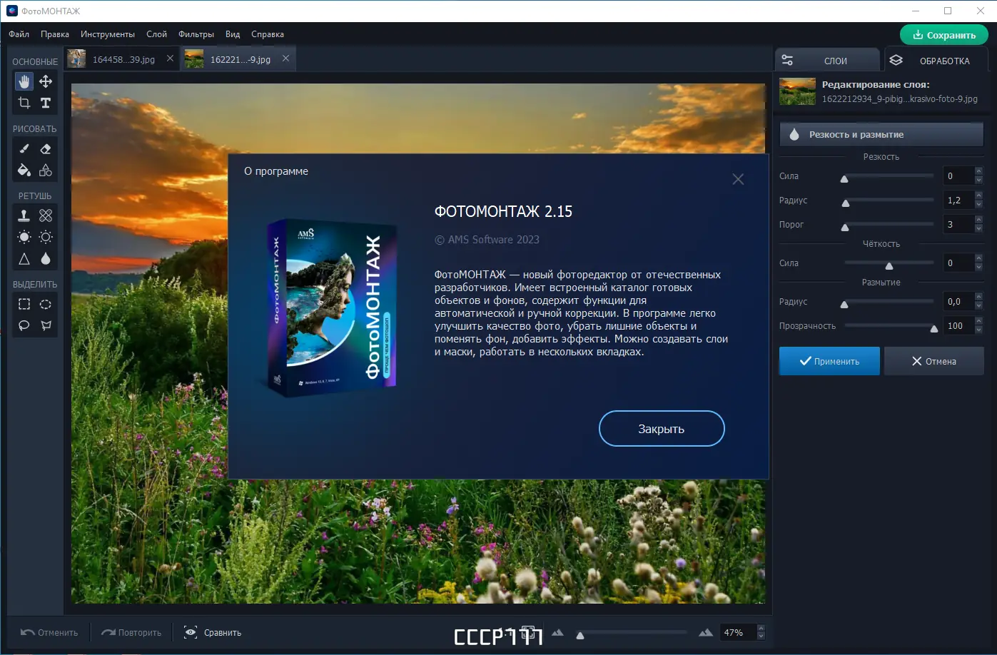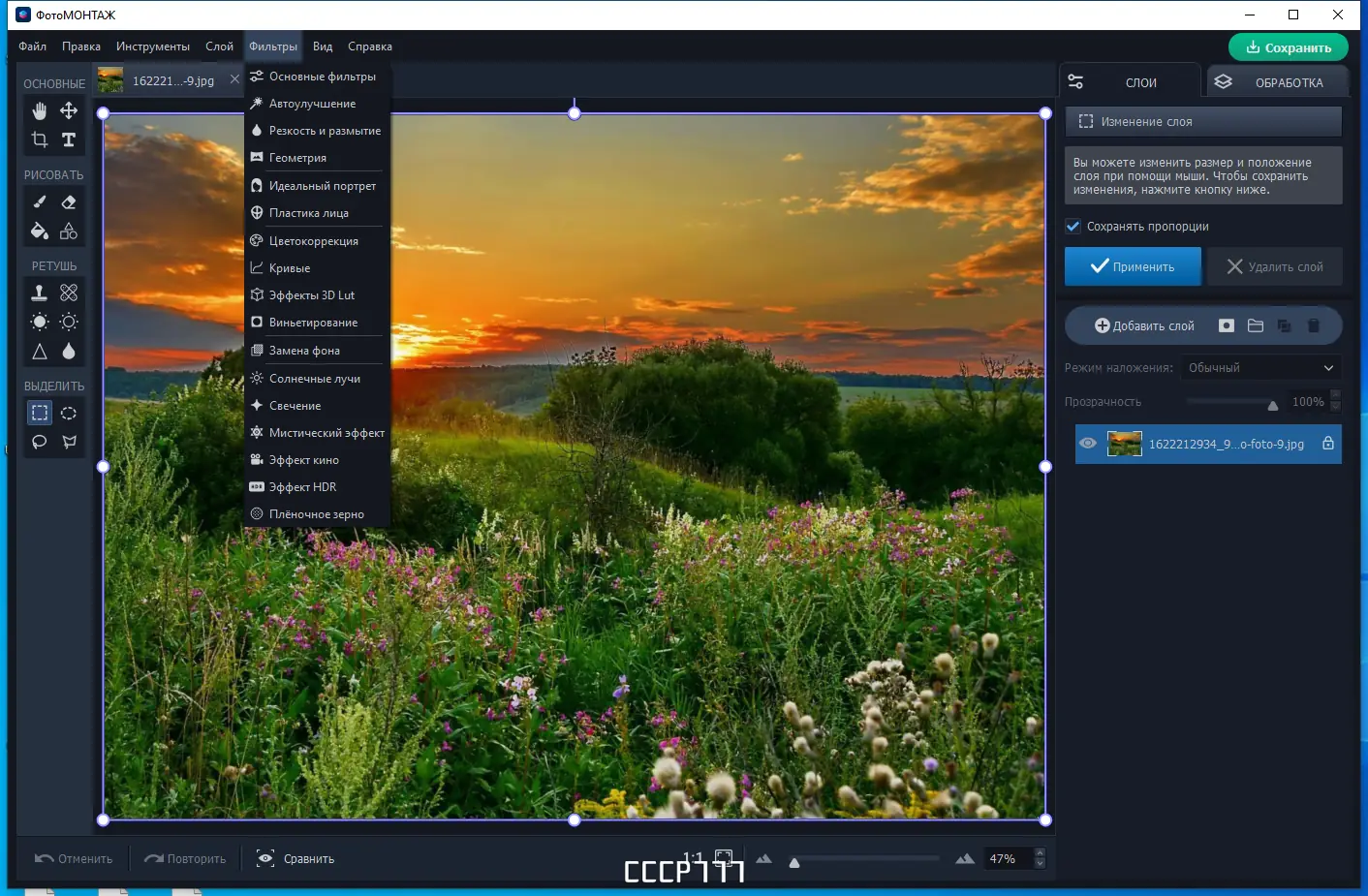 ФотоМОНТАЖ – универсальный редактор фото с поддержкой слоев, предоставляющий возможности для профессиональной ретуши, фотомонтажа и создания эффектных изображений. Это современное решение для обработки фотографий, которое легко освоить и использовать как новичкам, так и опытным дизайнерам.