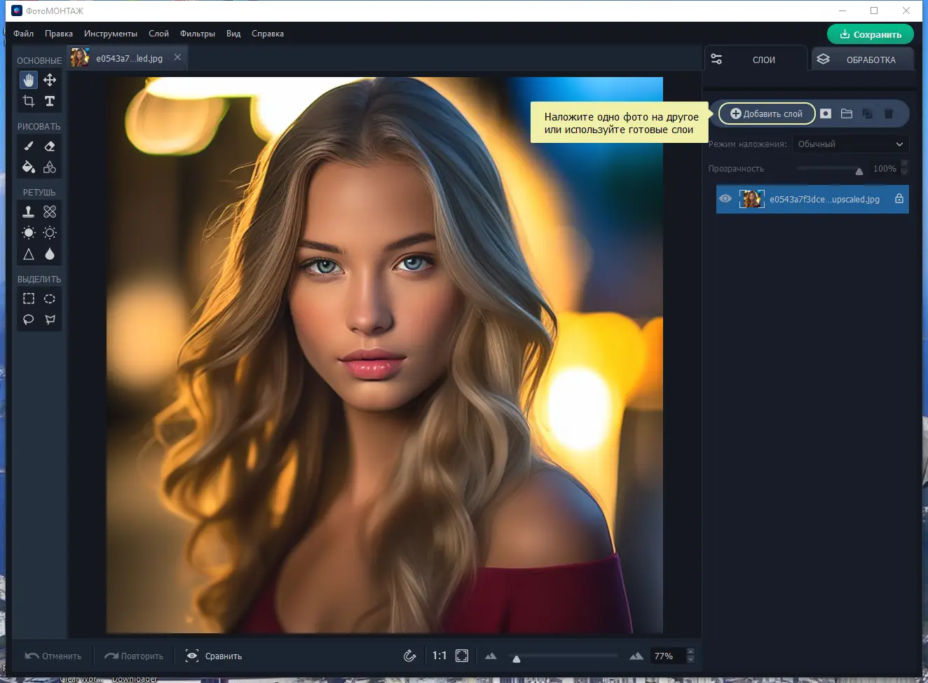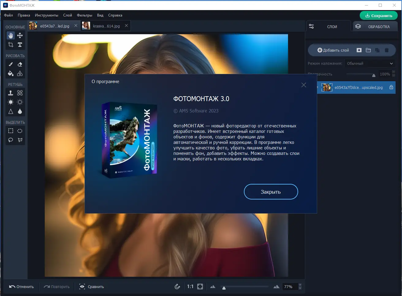 ФотоМОНТАЖ — профессиональный редактор фото с поддержкой слоев, позволяющий создавать высококачественные фотомонтажи и ретушировать лица. Благодаря расширенному набору инструментов вы сможете соединять несколько изображений, менять фон, улучшать цвет и освещение. В составе программы более 180 объектов и текстур, современных фильтров и 3D LUT, что обеспечивает широкий спектр возможностей для творчества и профессиональной обработки изображения. Простым и понятным интерфейсом она подходит как для новичков, так и для опытных фотографов.