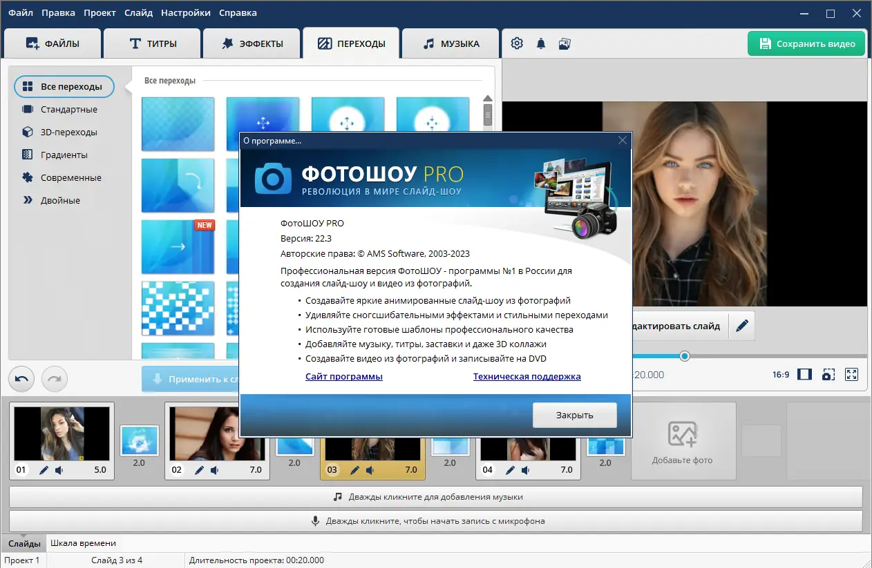 Профессиональная программа для создания впечатляющих слайд-шоу из фотографий и музыки с богатым набором эффектов и переходов.