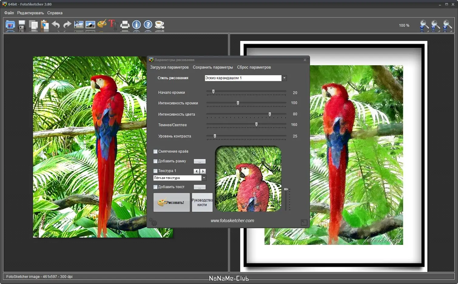 FotoSketcher — это небольшое, интуитивно понятное приложение, разработанное для работы с изображениями без необходимости сложных настроек. Ее интерфейс разделен на две части: одну для исходного изображения, другую — для результата, что облегчает процесс редактирования и позволяет сразу видеть эффекты. В программе доступно более 20 опций для обработки фотографий, включая автоматические эффекты, изменение яркости, контрастности и насыщенности, а также уникальные художественные стили. Фото можно преобразовать в живопись, карандашный эскиз или рисунок с помощью всего нескольких кликов.