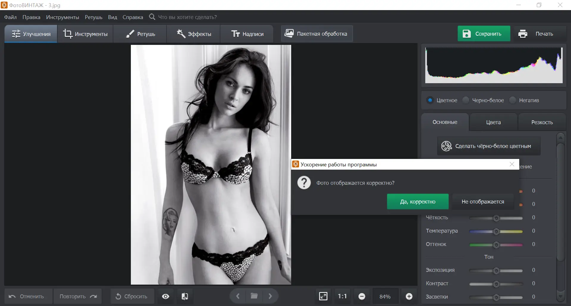 ФотоВИНТАЖ — современный редактор для восстановления и ретуширования старых фотографий. Он помогает избавиться от дефектов, сделать изображение более четким, цветным и ярким, даже без специальных навыков.