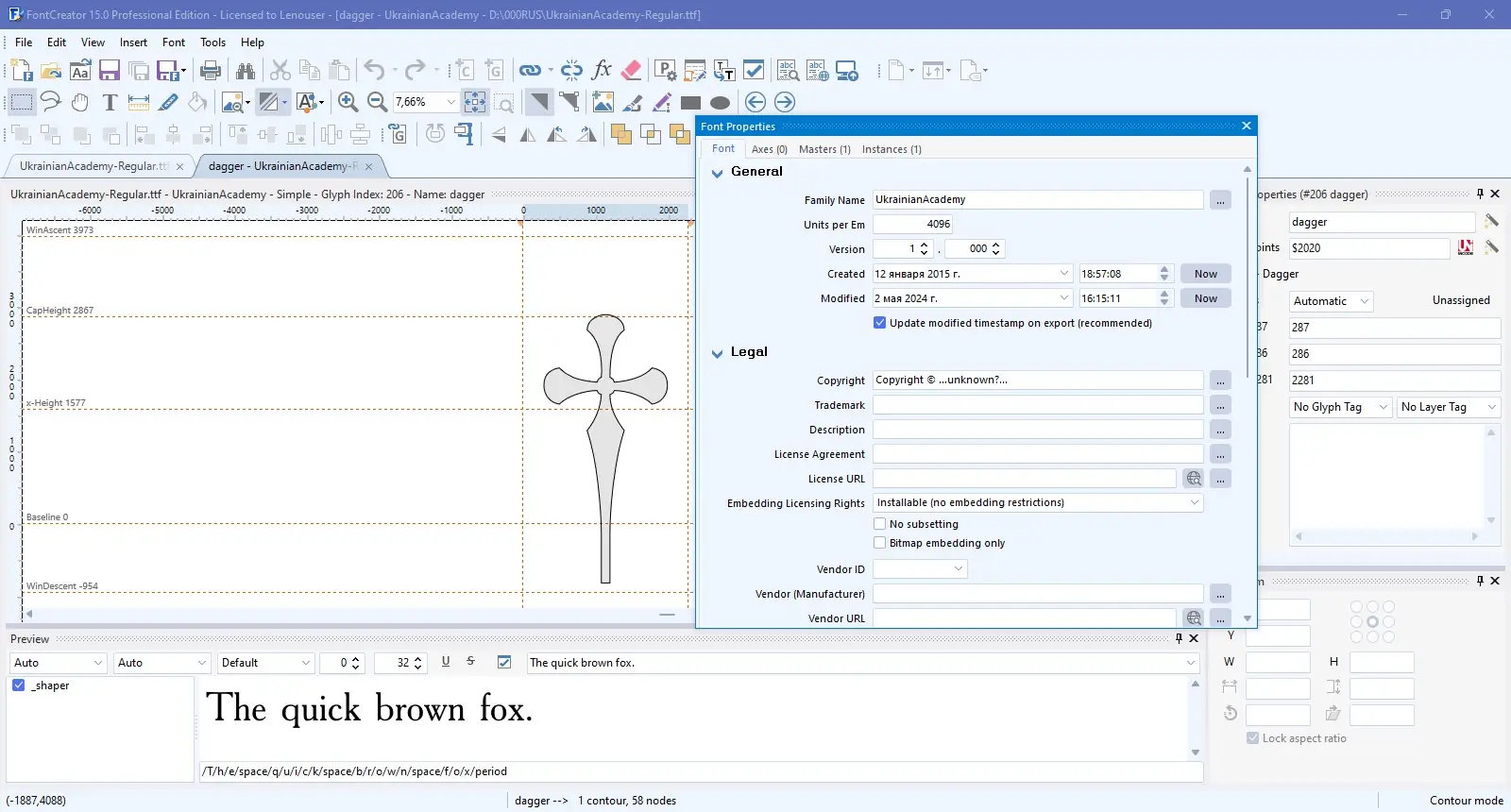 Программа FontCreator дает возможность создавать уникальные рукописные шрифты путем сканирования handwritten листов или редактирования уже существующих файлов. Благодаря расширенным инструментам редактирования и проверки, пользователь может улучшить качество и точность шрифтов, автоматизировать создание дополнительных символов, а также преобразовать шрифты в различные форматы. В версии 15.0 добавлены новые функции, такие как объединение конутров, автоматическое исправление ориентации контуров и расширенные средства экспорта, что значительно ускоряет работу с крупными файлами и повышает их качество.