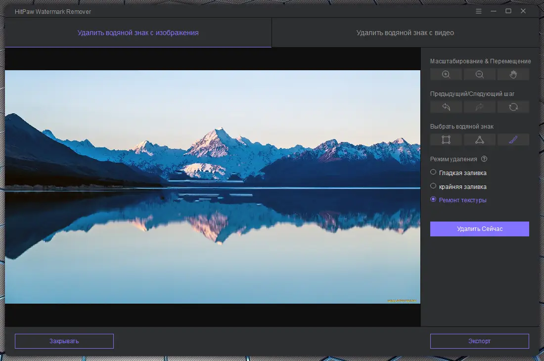 Программа помогает устранить водяные знаки, даты, здания, людей и другие нежелательные объекты с фотографий и видеороликов. Ее интерфейс интуитивно понятен и позволяет быстро загружать файлы, выбирать методы удаления и получать высококачественные результаты. Благодаря широкому набору поддерживаемых форматов и разнообразным инструментам, приложение подходит для обработки как профессиональных, так и любительских медиафайлов.