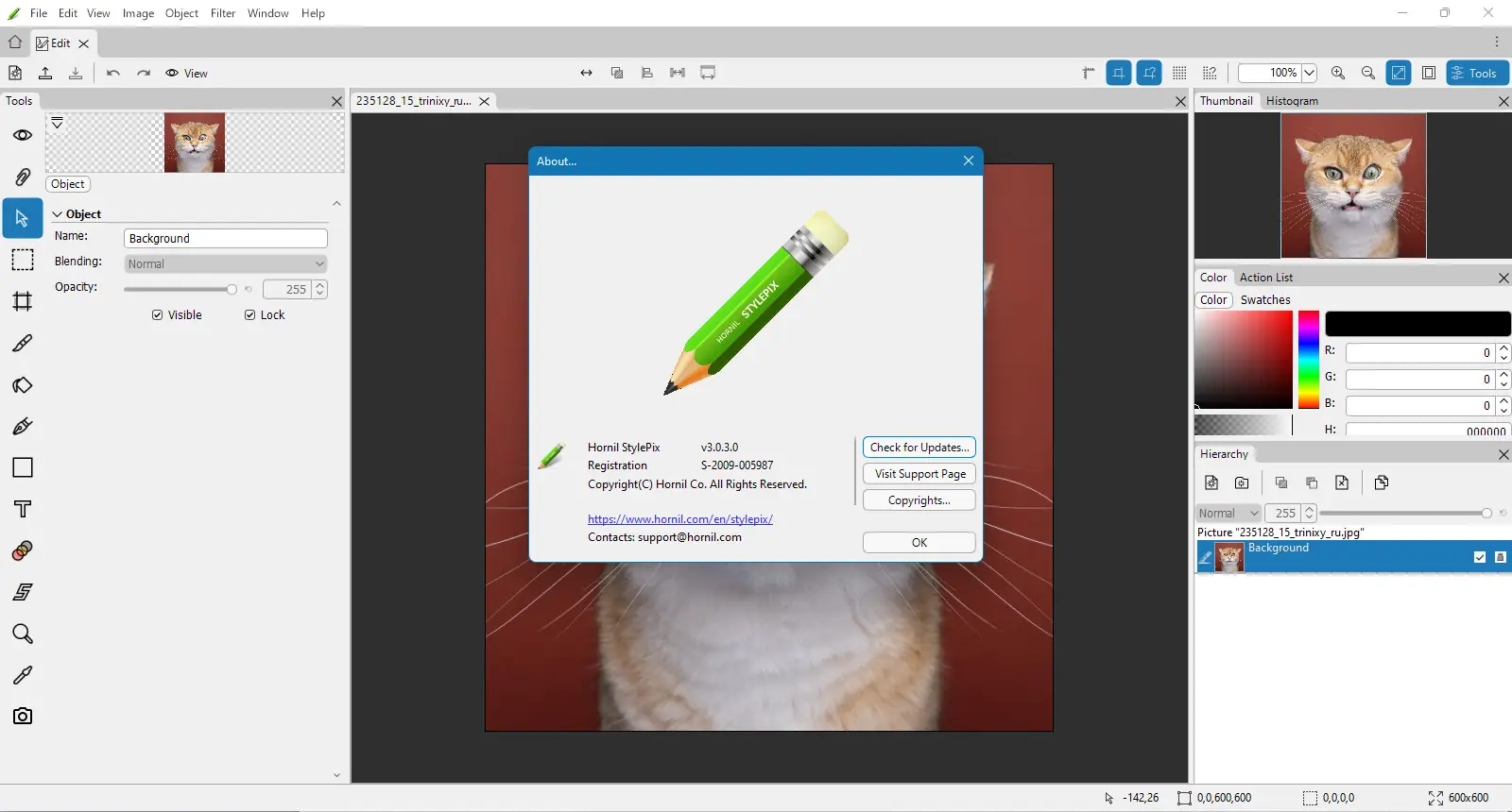 Hornil StylePix представляет собой функциональный и удобный редактор изображений, сочетающий в себе богатый инструментарий и понятный интерфейс. Программа идеально подойдет как для профессионалов, так и для новичков, ведь она позволяет осуществлять практически все виды корректировок фотоснимков и графических материалов. В ее арсенале — инструменты для точечной и глобальной корректировки, широкий выбор кистей, режимов заливки и выделения, а также возможность работы с текстом и слоями.