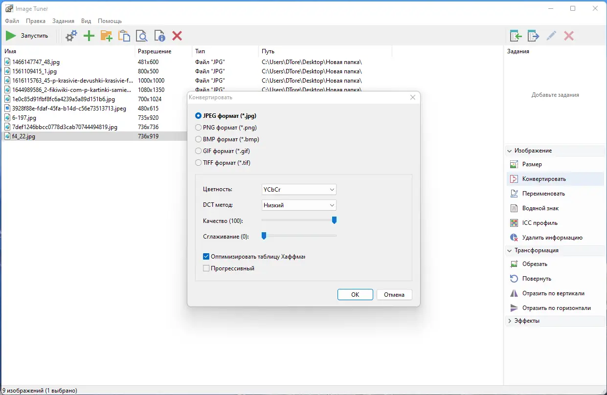 - Пакетная обработка изображений