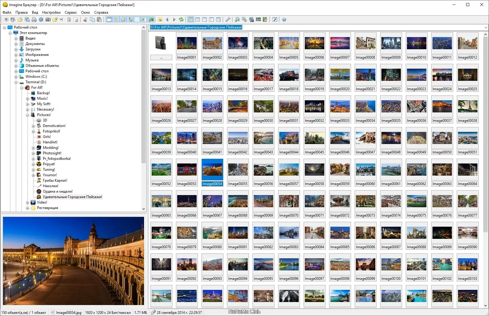 - Отображение подробной информации о файлах, включая метаданные Exif и IPTC.