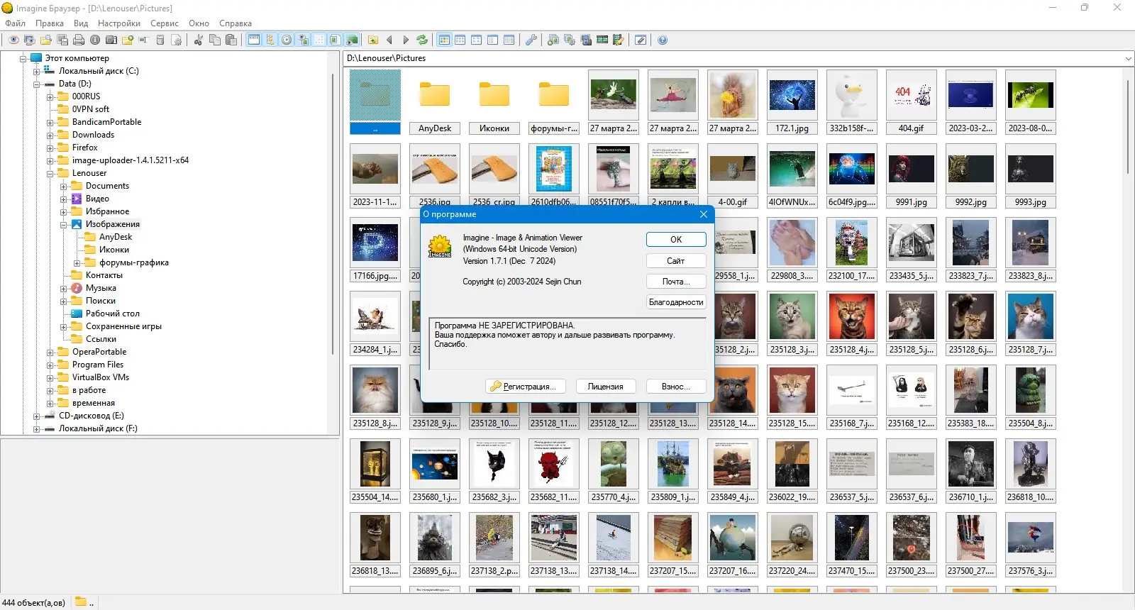 Imagine — это бесплатное приложение для просмотра изображений, предназначенное для операционных систем Windows 7, 8/8.1, 10 и 11. Оно предлагает альтернативу популярным бесплатным вьюерам, таким как IrfanView, XnView или FastStone Image Viewer, сочетая низкое потребление ресурсов и расширенные возможности. Программа совместима с x32 и x64 Bit системами, поддерживает широкий спектр форматов изображений, а также RAW-файлов цифровых камер, архивов и изображений с высоким динамическим диапазоном. Благодаря оптимизации и мультиязычной поддержке, это решение подойдет как для простого просмотра, так и для профессиональной работы с изображениями. Вы сможете не только просматривать, но и извлекать кадры из анимационных файлов, показывать подробную информацию о файлах, управлять прозрачностью и выполнять множество других задач, связанных с изображениями.