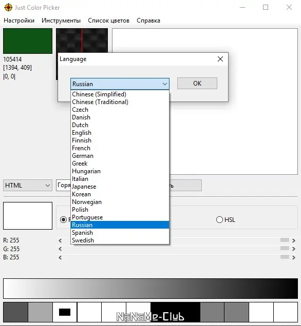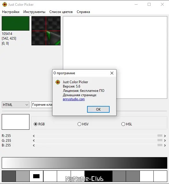 Бесплатная портативная программа для точного определения цвета пикселей и работы с цветовыми форматами.