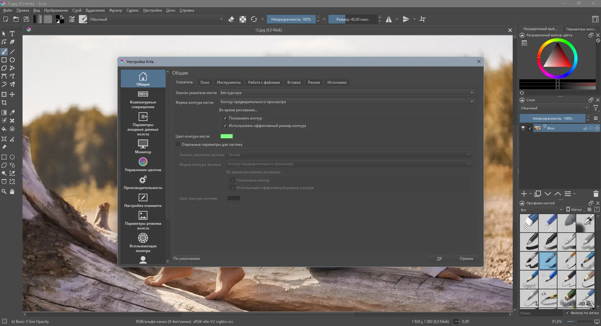 Дополнительно | Графический планшет рекомендуется для управления кистями | Устройство с поддержкой графического планшета и актуальные драйверы |