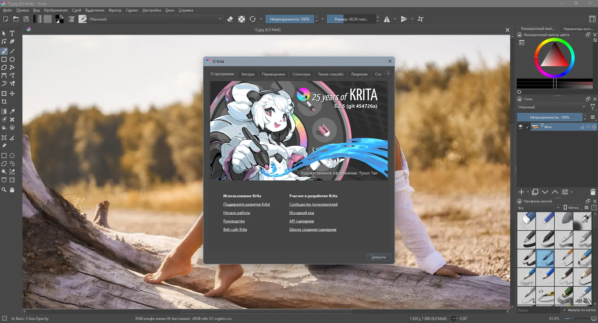 Также Krita оснащена инструментами для имитации бумаги и пастели, возможности для формирования текстур, изменения перспективы и выделения прозрачных каналов. Важным преимуществом является возможность открытия и редактирования файлов с разными уровнями масштабирования и поддержки формата OpenRaster для максимально удобной работы с проектами. Портативная версия позволяет запускать программу без установки, что удобно для мобильного использования или работы на ПК с ограниченными правами.