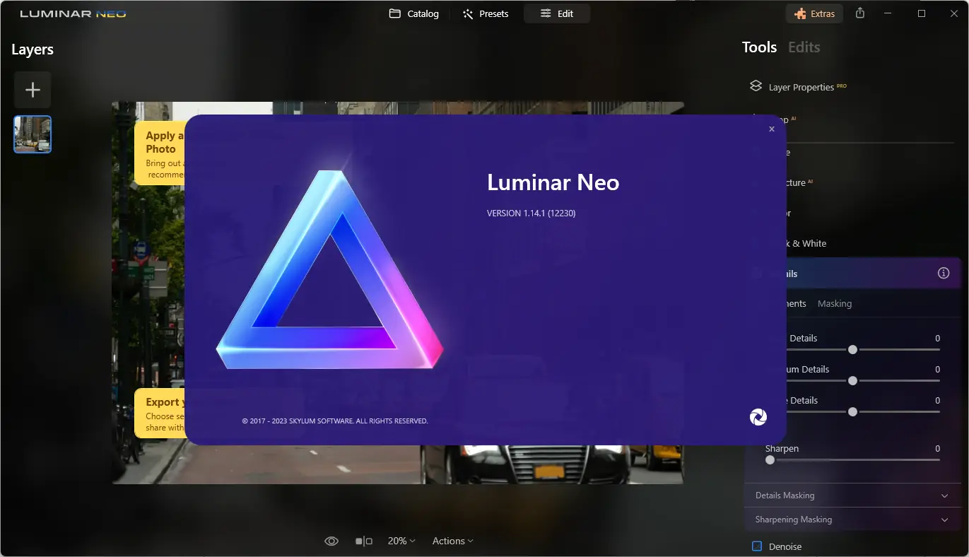 Luminar Neo — это инновационный фоторедактор, разработанный компанией Skylum, использующий передовые технологии машинного обучения. Новый редактор сочетает в себе функции Luminar AI и расширенные возможности для профессиональной обработки изображений. Он способен автоматически анализировать фотографии, распознавать объекты, удалять нежелательные артефакты и заменять фоны, что значительно ускоряет процесс редактирования. Благодаря улучшенному механизму ИИ, Luminar Neo обеспечивает высочайшее качество обработки, точный контроль над экспозицией и тоном, а также автоматическую коррекцию дефектов и шума. Новая версия включает дополнительные инструменты для работы с портретами, такие как Portrait AI, Skin AI и Bokeh AI, объединённые в одном интерфейсе, что расширяет возможности для профессиональной коррекции изображений.