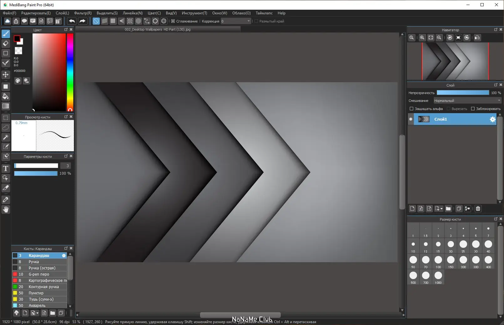 - Более 50 видов кистей, включая GPen и Mapping Pen, с настройками и возможностью создания собственных кистей
