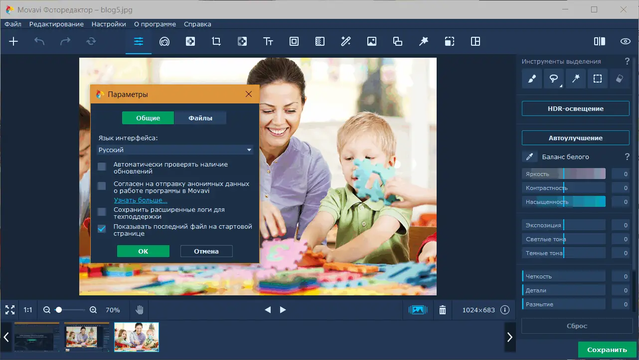 Movavi Photo Editor — это простой и эффективный инструмент для обработки фотографий, предназначенный как для новичков, так и для опытных пользователей. Благодаря автоматическим и ручным инструментам, программа позволяет быстро улучшить качество изображений и удалить нежелательные элементы всего за несколько кликов.