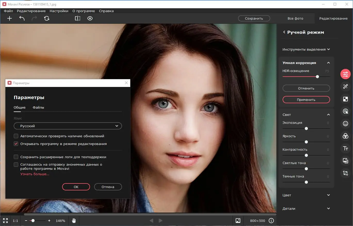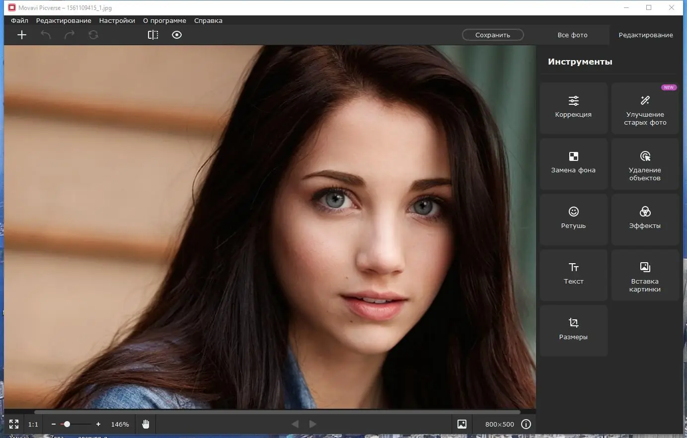 Этот популярный графический редактор предлагает широкий спектр функций для редактирования и улучшения фотографий. Благодаря наличию искусственного интеллекта программа автоматически обрабатывает изображения, повышая их качество с помощью нейросетевых алгоритмов. В дополнение к автоматическим улучшениям, доступна обширная база визуальных эффектов, плагинов и инструментов, которые можно применять как вручную, так и автоматически. Movavi Picverse отлично подходит для удаления ненужных объектов, восстановления старых снимков, изменения фона, настройки яркости, контрастности и резкости, а также для нанесения текста и создания профессионально выглядящих фотографий.