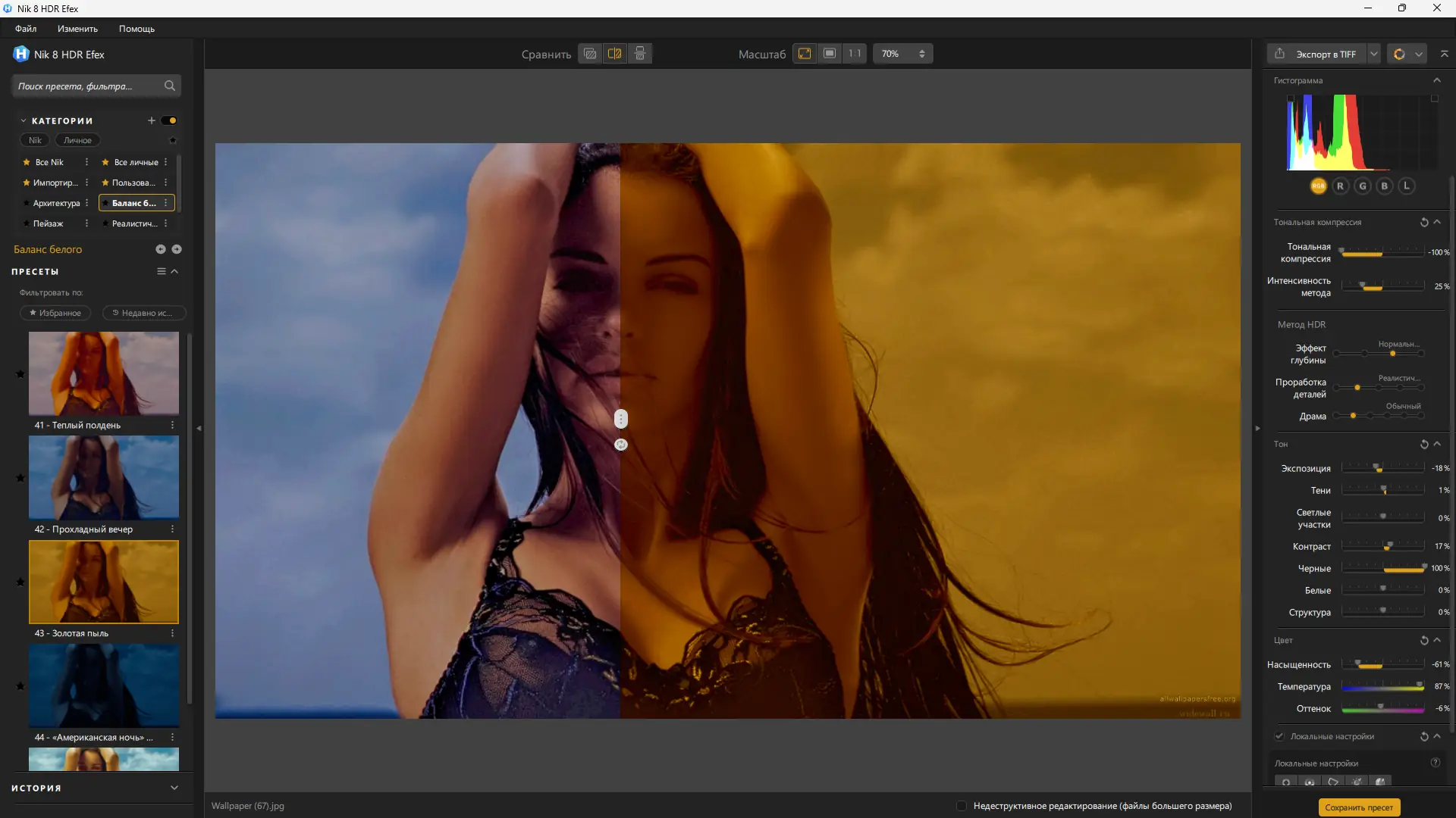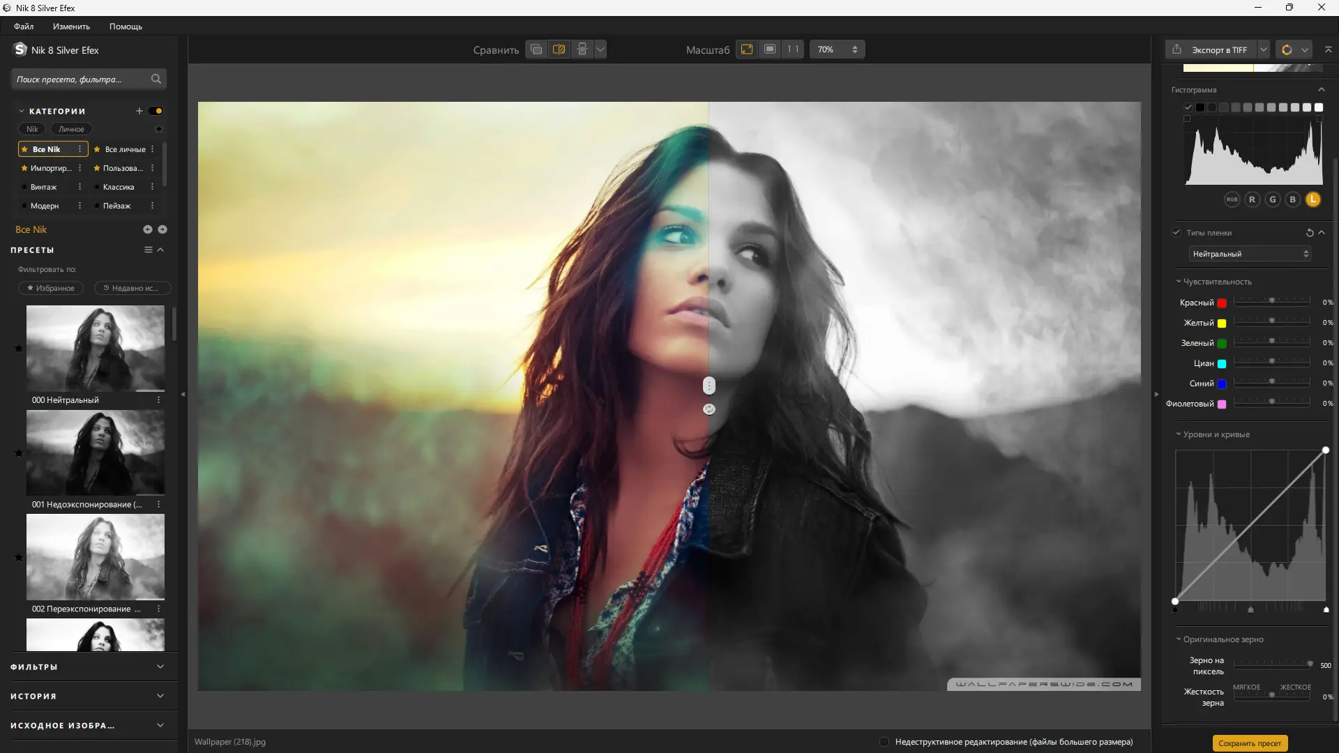 - Модернизированный Nik Silver Efex с возможностью видеть оригинальное цветное изображение при работе в черно-белом режиме.