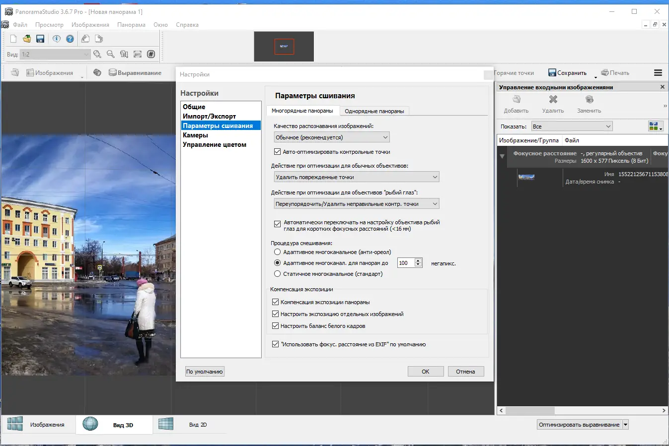 - Бесшовное склеивание серии изображений в плоскую или 360-градусную панораму