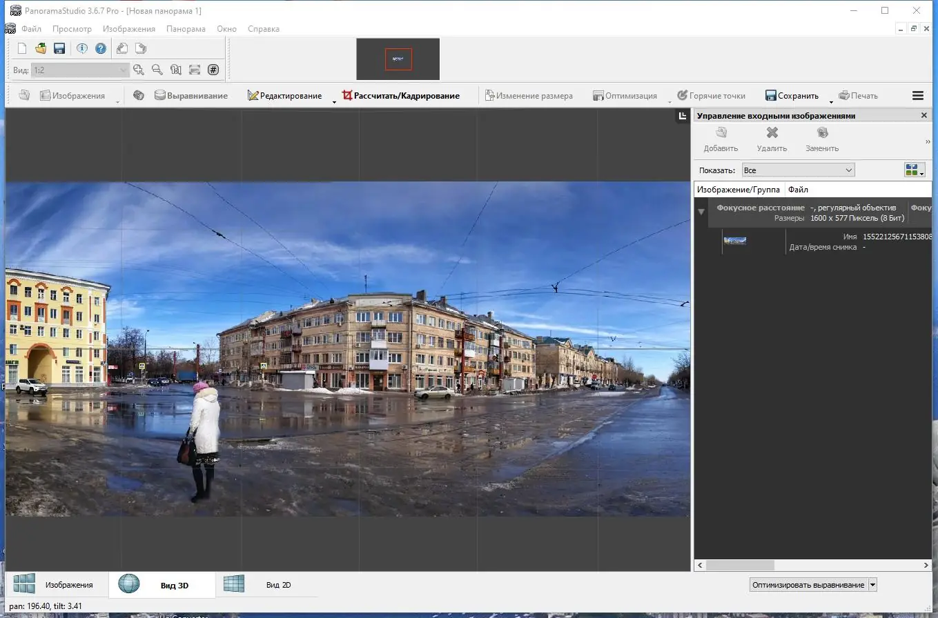 - Поддержка создания сферических панорам 360×180 и проектирования цилиндрических и перспективных панорам