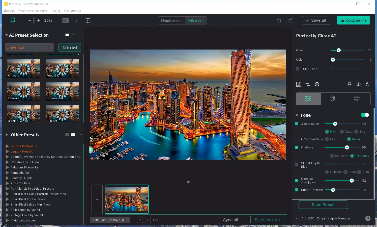 Perfectly Clear WorkBench предлагает простое и эффективное решение для автоматической обработки фотографий. Благодаря запатентованной технологии и научным исследованиям, продукт исправляет такие распространённые дефекты, как засветка, нехватка насыщенности, шумы, «красные глаза» и искажения цвета. Интерфейс программы поддерживает работу с несколькими слоями, позволяет редактировать только выбранные области и обладает расширенными возможностями для обнаружения и устранения дефектов. Этот инструмент заслуживает внимания как профессиональных фотографов, так и любителей, благодаря своей универсальности и легкости использования.