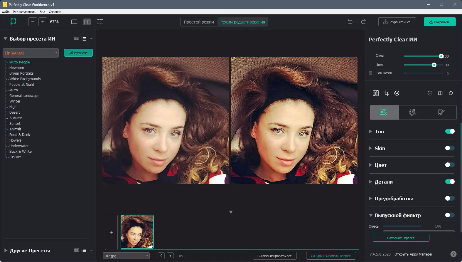 Perfectly Clear WorkBench — мощное приложение для автоматической и ручной коррекции фотографий, позволяющее всего за пару кликов добиться профессиональных результатов. Эта программа идеально подходит как для фотографов-любителей, так и для профессионалов, стремящихся быстро и качественно улучшить фотографии, сохранив при этом естественный вид изображений.