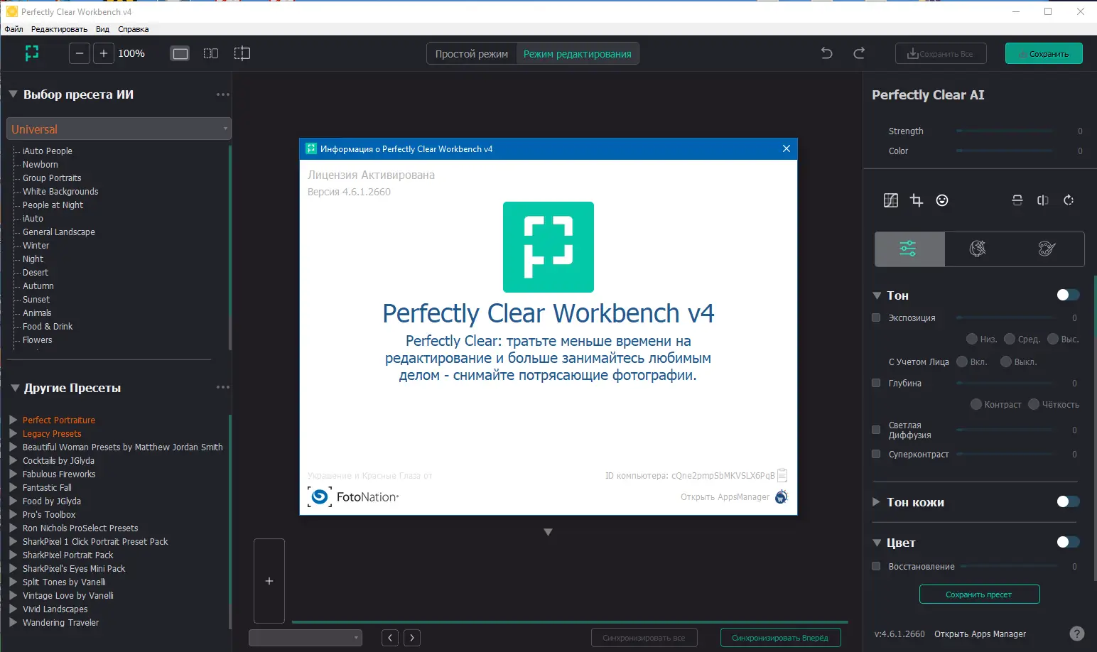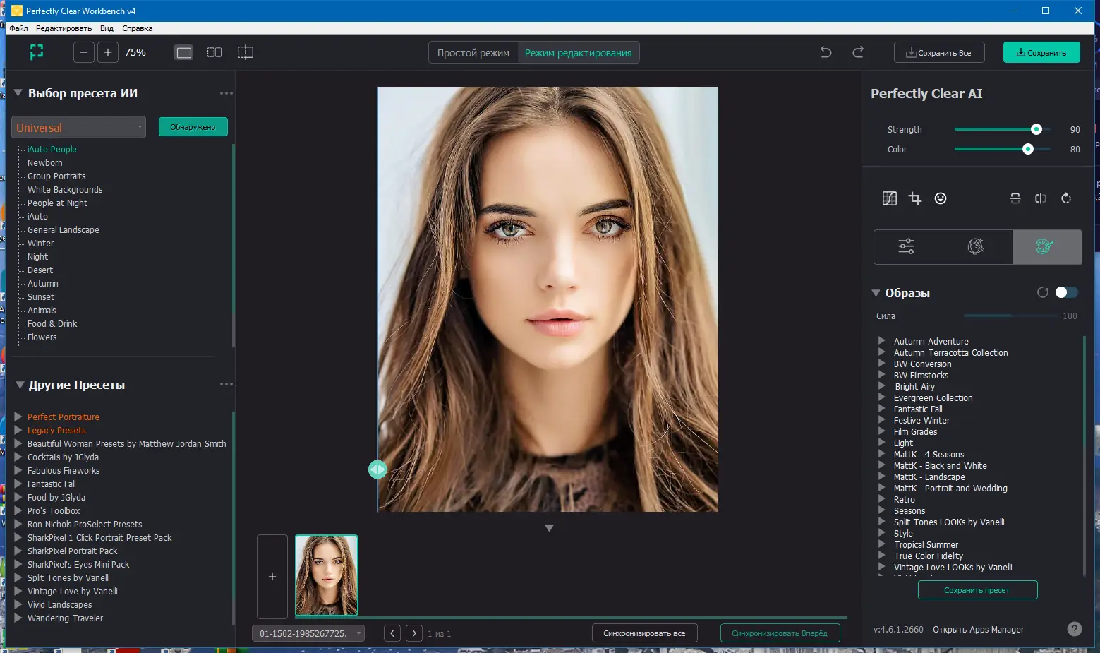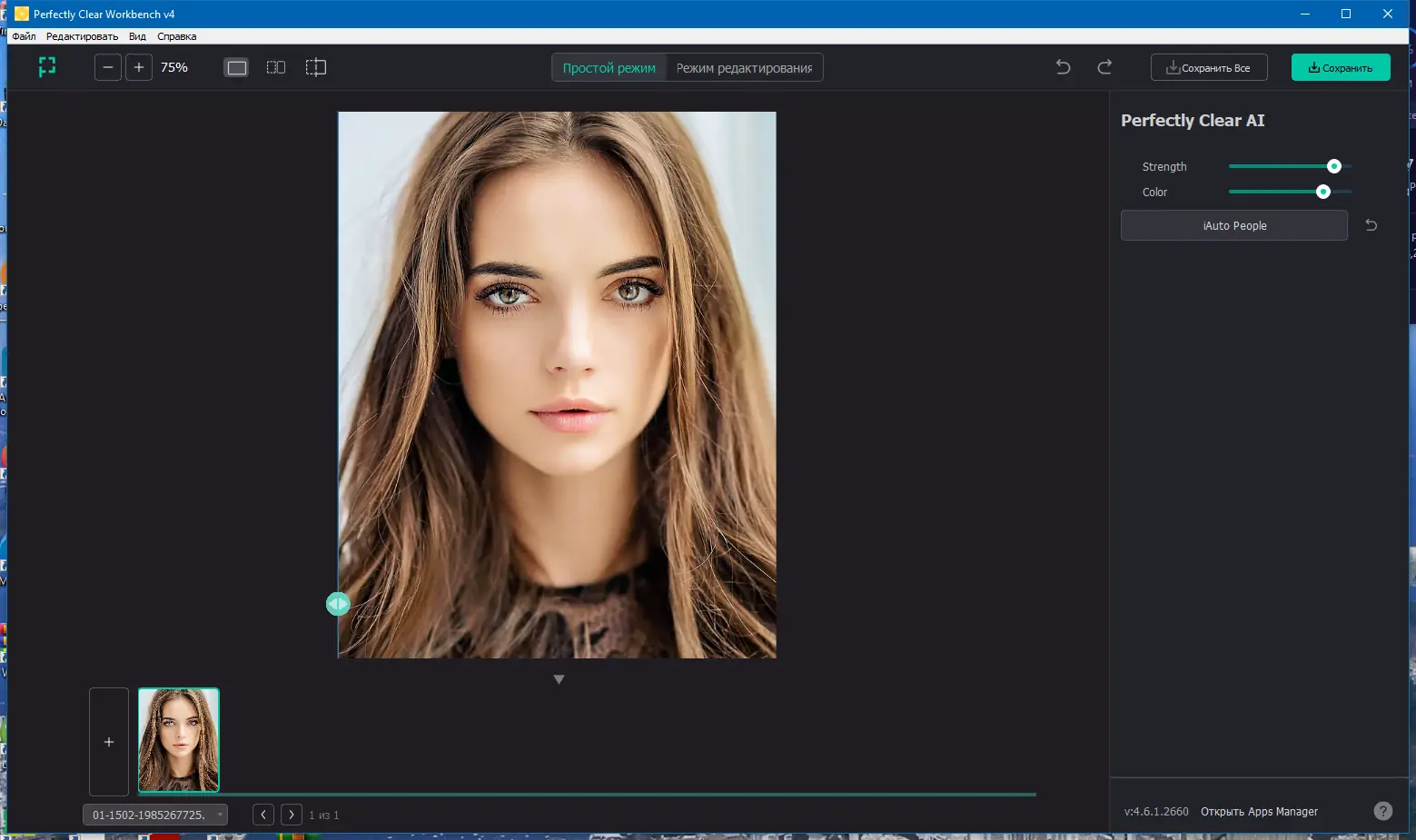 Perfectly Clear WorkBench — это мощный инструмент для автоматической и ручной редакции фотографий, позволяющий быстро довести изображения до совершенства всего за несколько кликов. Программа использует запатентованные технологии и научные исследования, чтобы исправлять дефекты снимков, такие как засветка, размытие, эффект «красных глаз», шумы и цветовые искажения. Она идеально подойдет как для профессиональных фотографов, так и для любителей, стремящихся сохранить и улучшить свои воспоминания без необходимости в сложных настройках и длительном редактировании.
