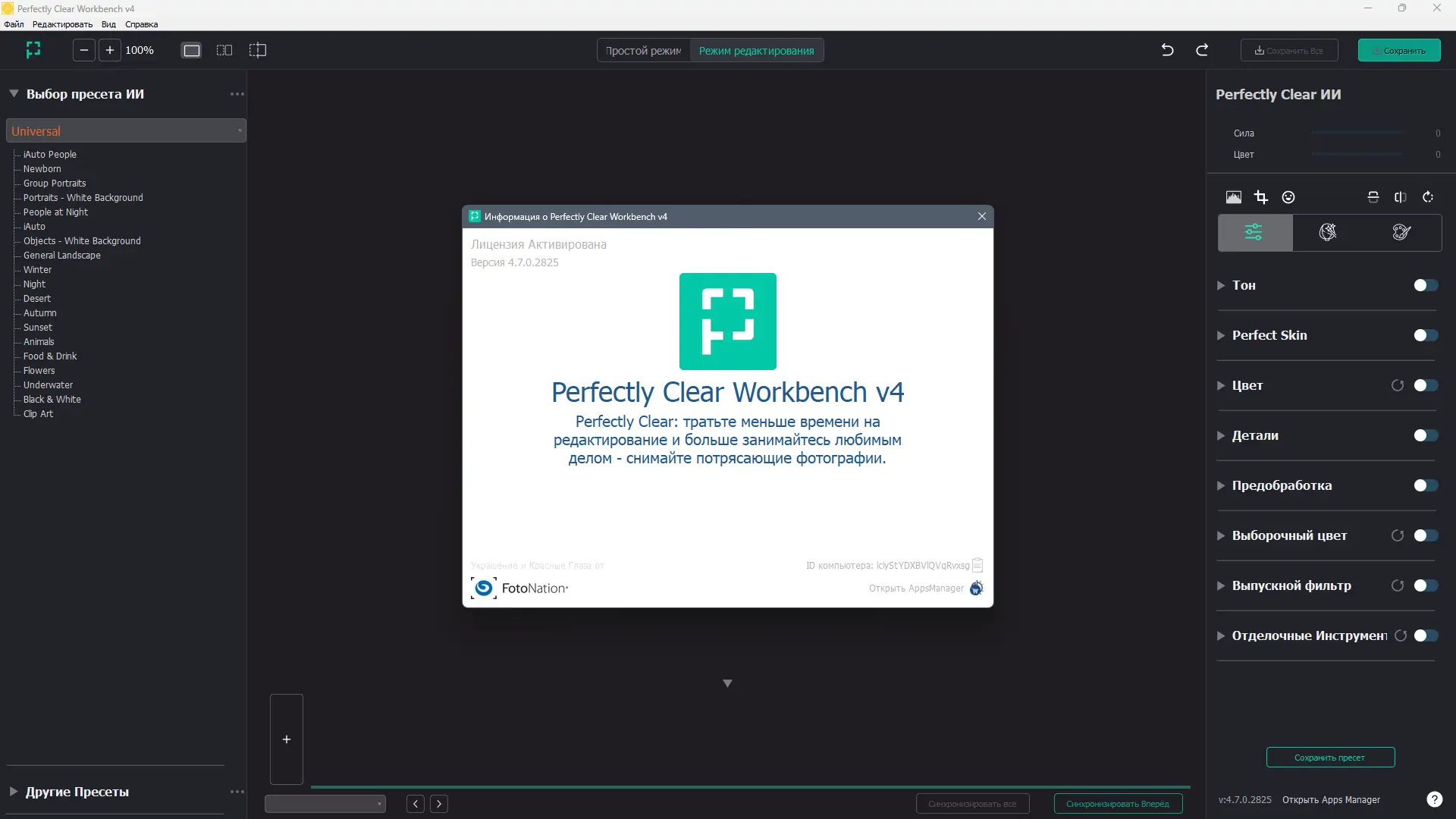 - После завершения установки запустите Perfectly Clear WorkBench и активируйте при необходимости с помощью предоставленных ключей или патча.