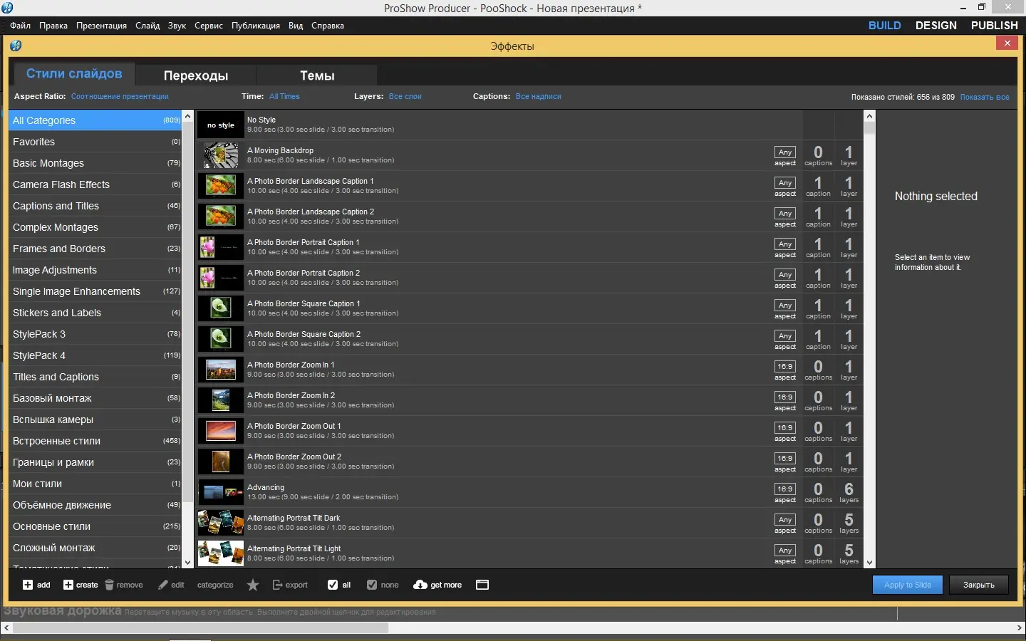 - Новый менеджер эффектов с возможностью быстрого импорта, экспорта и управления стилями и переходами