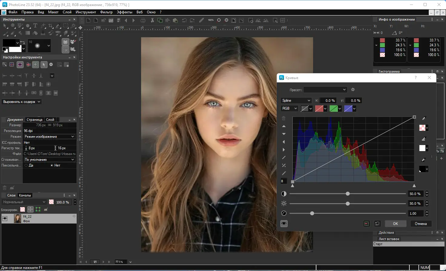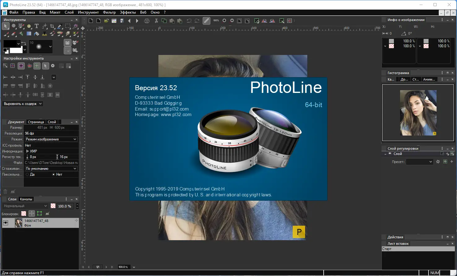 PhotoLine — это простая в обращении, универсальная программа, объединяющая функции редактора растровой и векторной графики. Совмещая понятный интерфейс и богатый функционал, она подходит как для профессиональных дизайнеров, так и для любителей. В редакторе реализованы инструменты для редактирования фотографий, создания иллюстраций, добавления текстов и применения различных эффектов и фильтров. Полная поддержка цветовой модели CMYK и работы с файлами форматов PDF, TIF, JPEG, PNG, PSD и многими другими расширяет возможности пользователей. Возможность работать со слоями, анимацией, а также экспортировать конечные результаты в HTML-галереи и анимированные GIF и Flash файлы делают PhotoLine универсальным решением для цифровой обработки изображений и подготовки мультимедийных проектов.