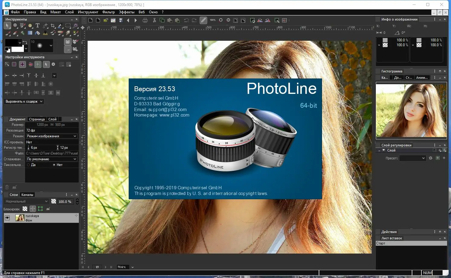 PhotoLine — это простая в обращении программа, объединяющая возможности редактора растровой и векторной графики. Она подходит как для профессиональных дизайнеров, так и для любителей, позволяя редактировать фотографии, создавать графические работы и применять различные эффекты и фильтры.