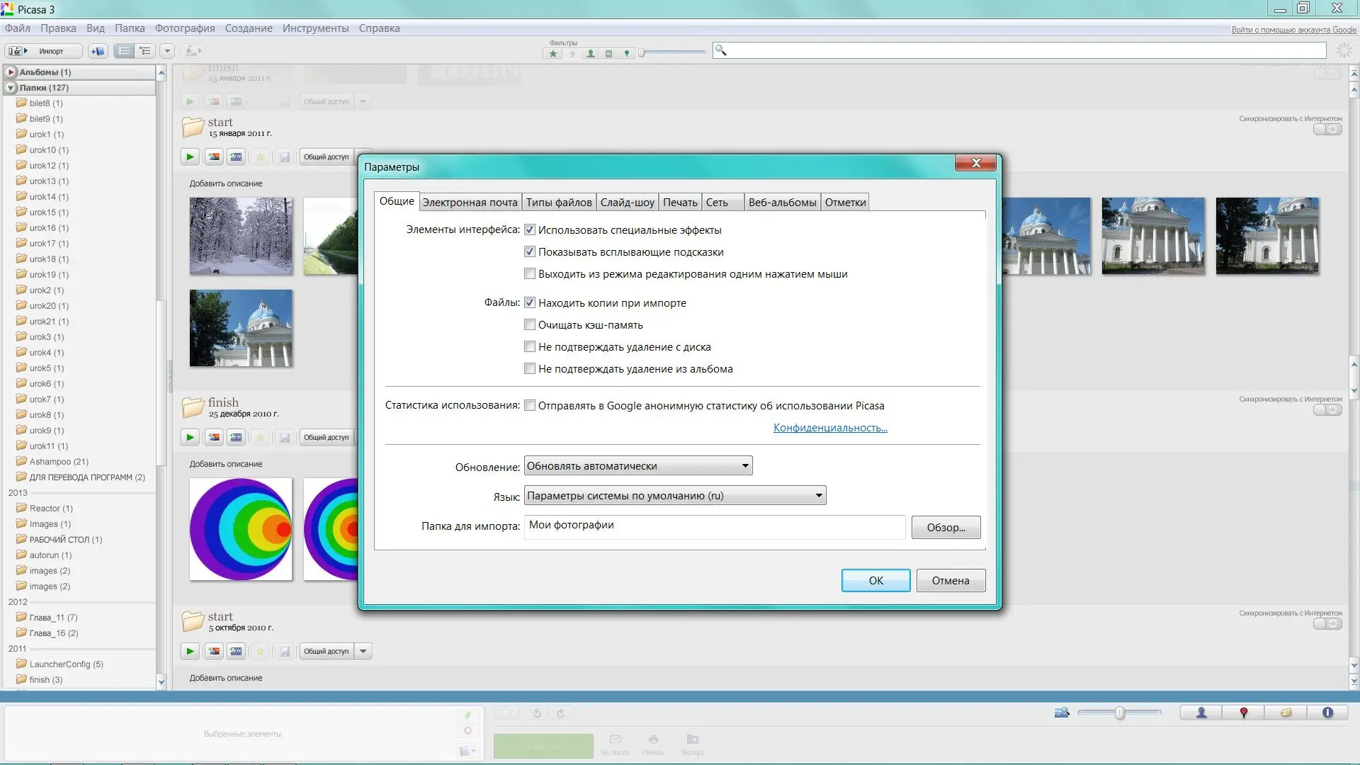 - Загрузка фотографий со сканера, камеры или другого устройства.