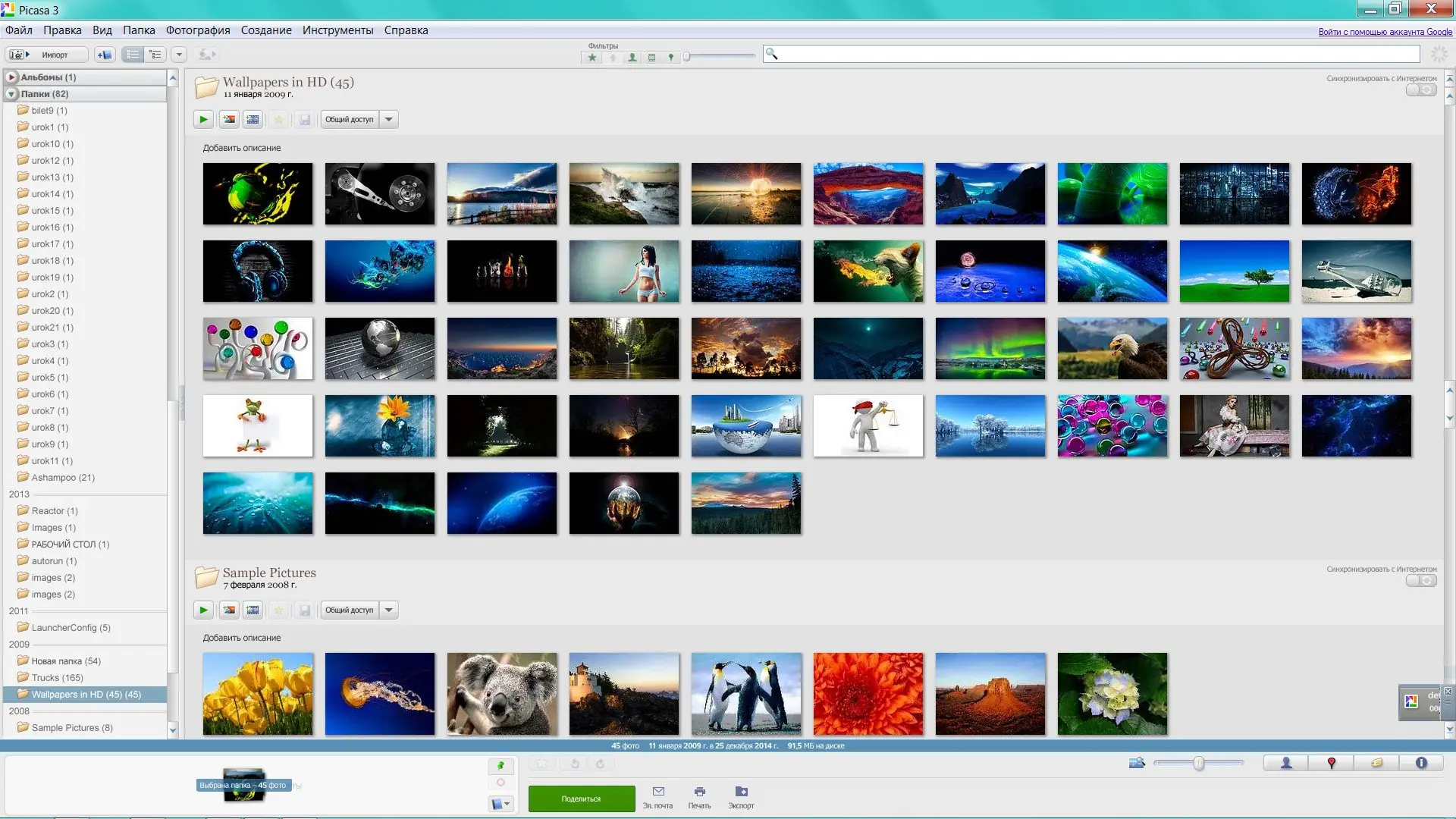 - Печать, создание коллажей и слайд-шоу из выбранных изображений.