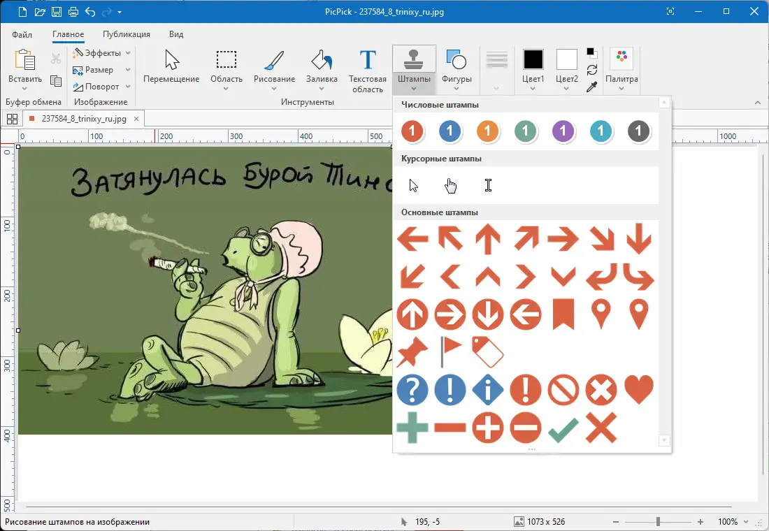 - Инструменты для измерения углов, получения цвета через пипетку, рисования и пометок поверх выбранных изображений
