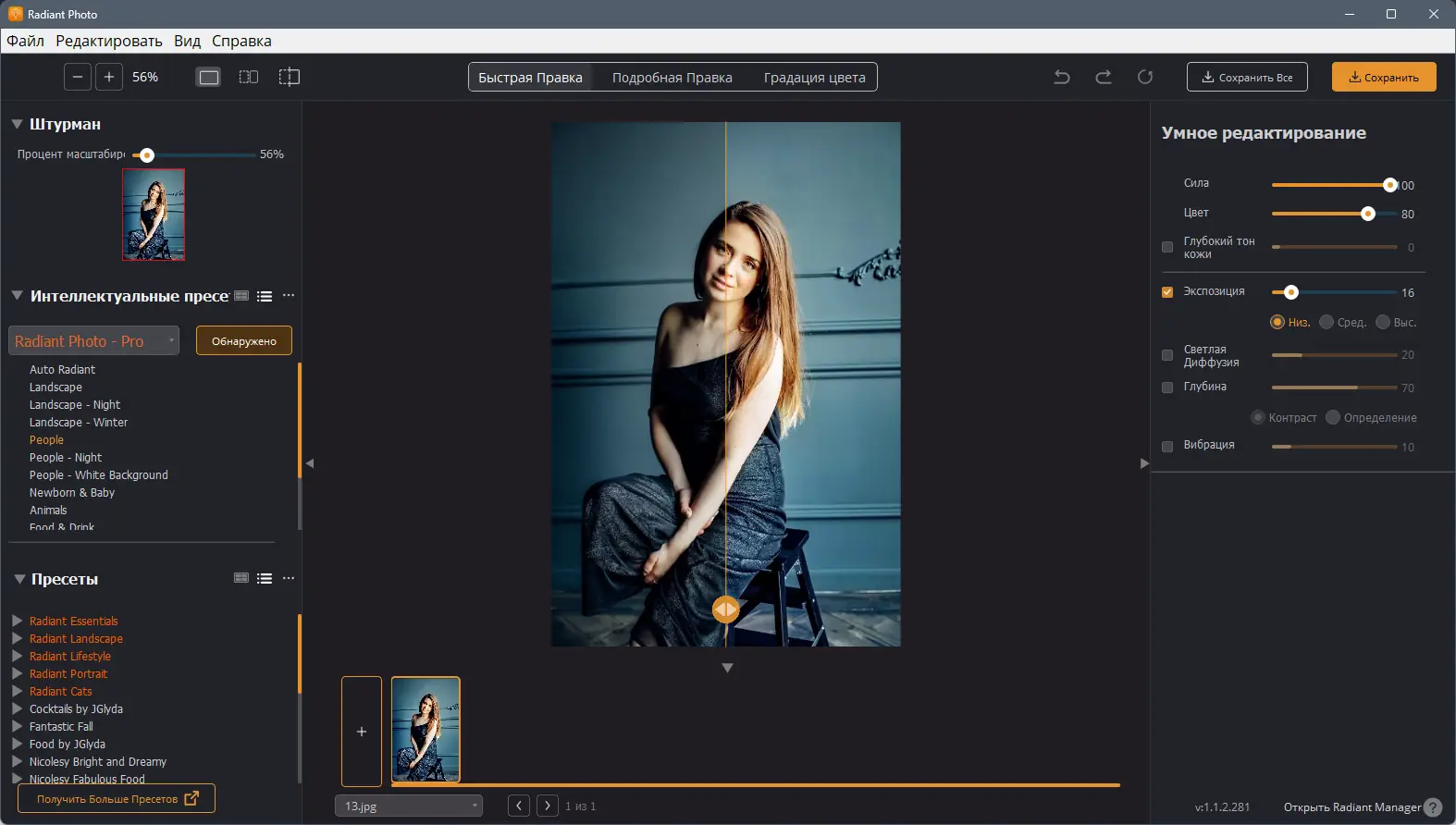 Radiant Photo — это мощная программа для редактирования фотографий, которая позволяет пользователям оперативно преобразовывать свои изображения, делать их ярче и более профессиональными. Она подходит как для amateurs, так и для профессиональных фотографов, благодаря разнообразию инструментов и удобству интерфейса.