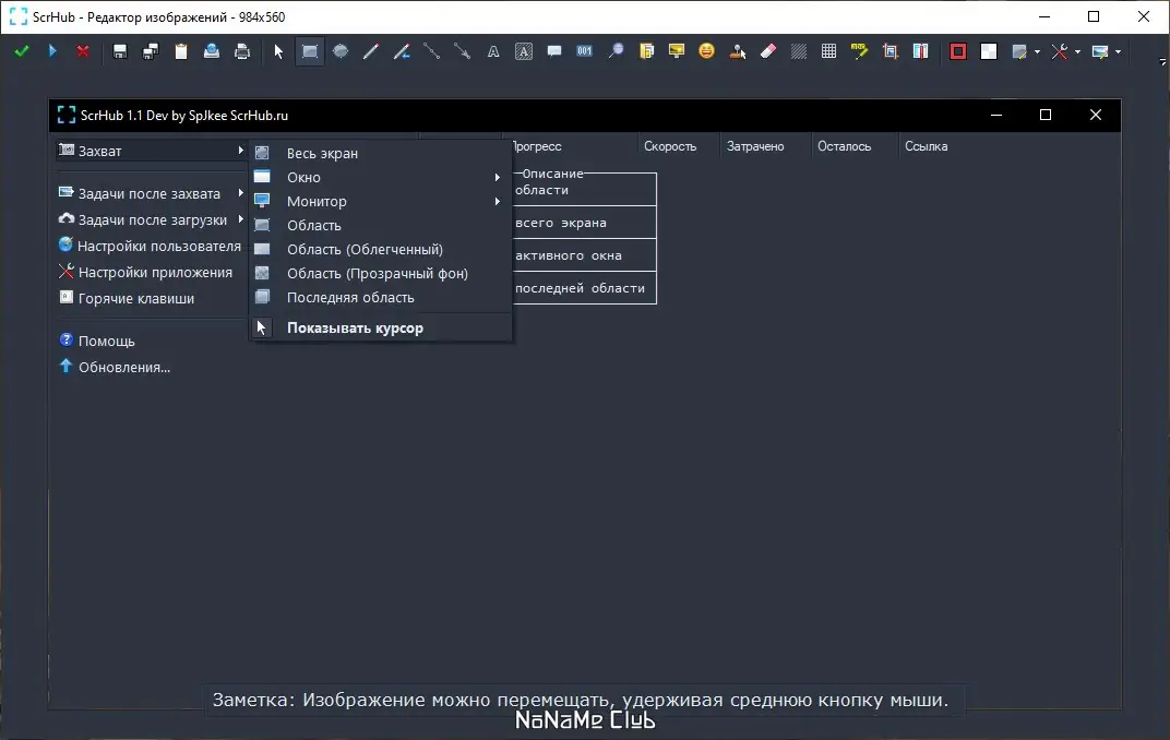 - Быстрый захват любых областей экрана, в том числе выбранной области, окна или отдельного монитора