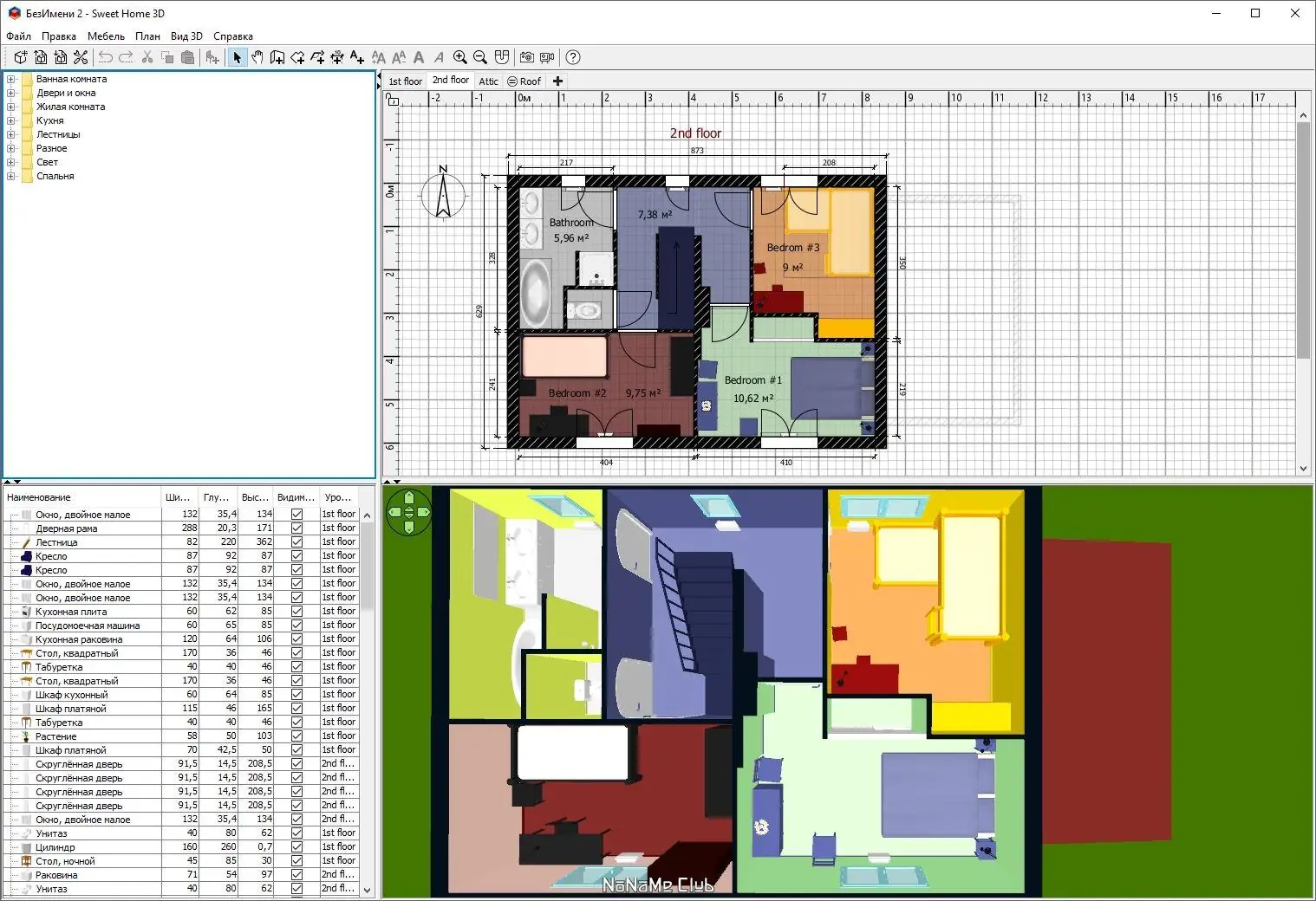 Бесплатная программа для создания планов домов и моделирования интерьера с возможностью просмотра в 2D и 3D. Легкая в использовании и обладает богатым функционалом для профессиональной и любительской разработки интерьерных решений.