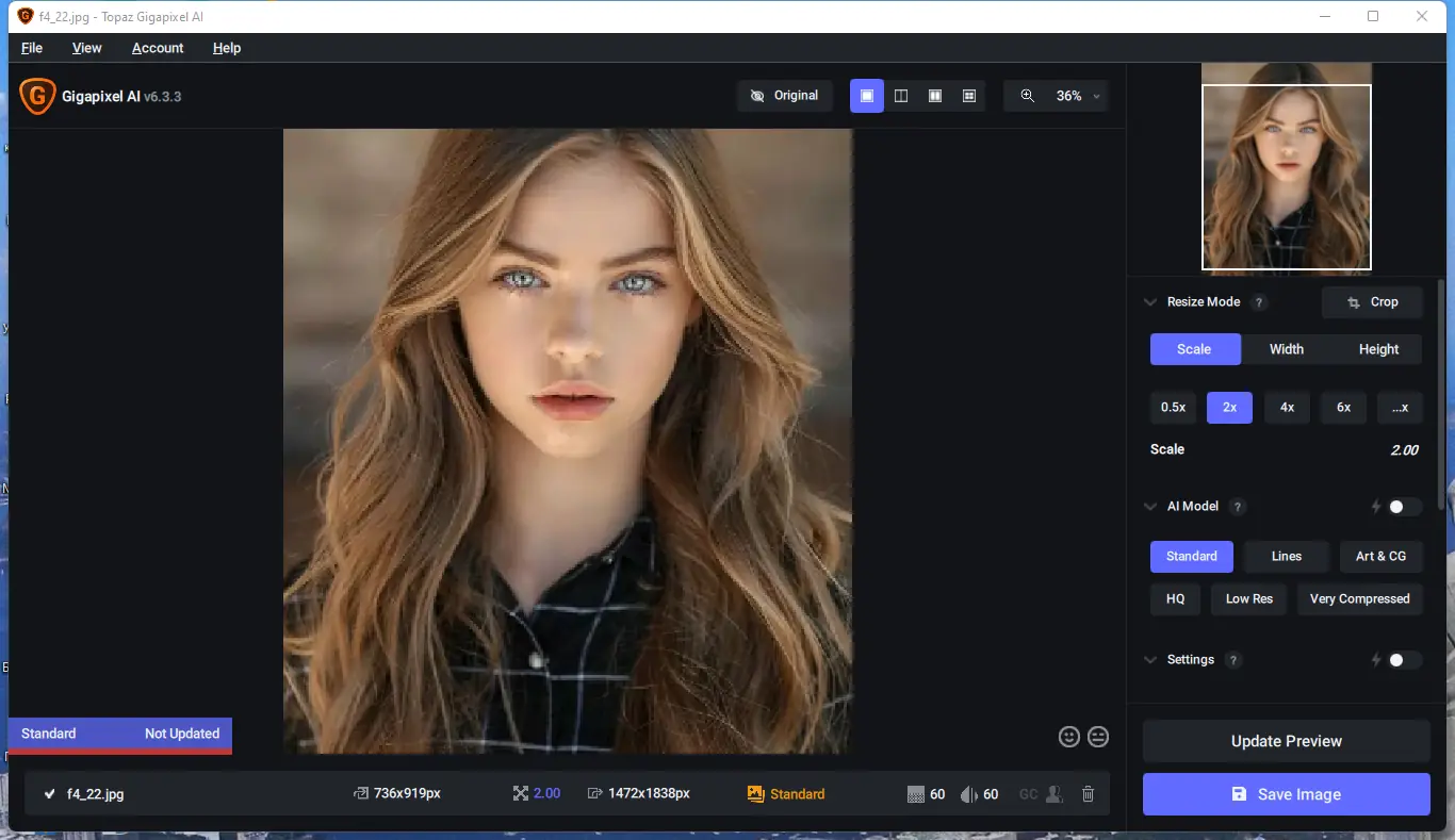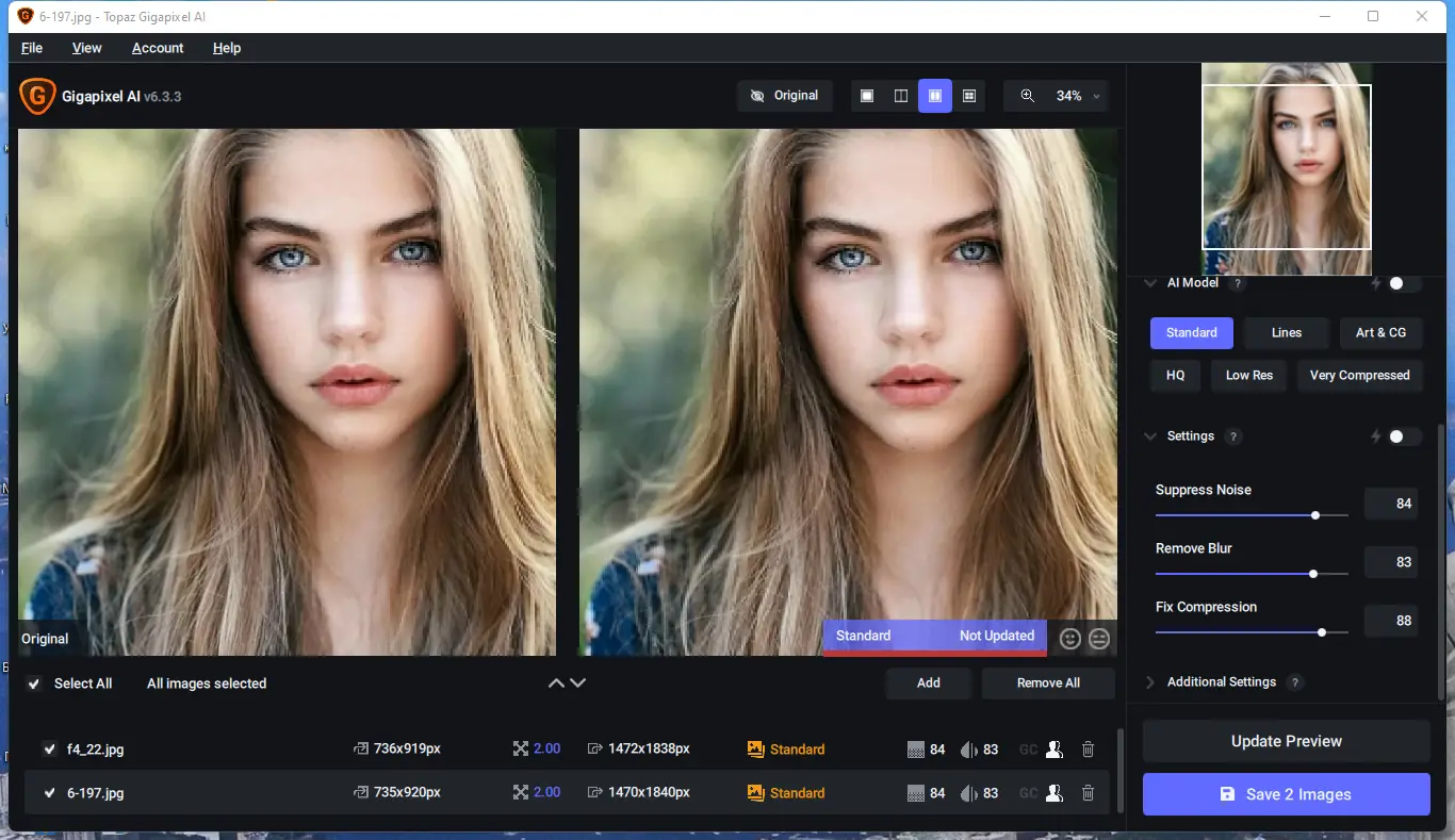 Программа позволяет увеличить размеры фотографий до 600%, добавляя естественные детали и повышая качество изображений, выполненных на различных устройствах — от смартфонов до DSLR-камер. Используя миллионы обучающих образцов, Gigapixel AI умеет восстанавливать реальные детали, повышая резкость и снижая шум, что гарантирует получение фотографий, которые трудно отличить от оригинальных изображений высокого разрешения. Благодаря использованию машинного обучения, продукт значительно превосходит традиционные методы интерполяции, обеспечивая насыщенные и естественные результаты.