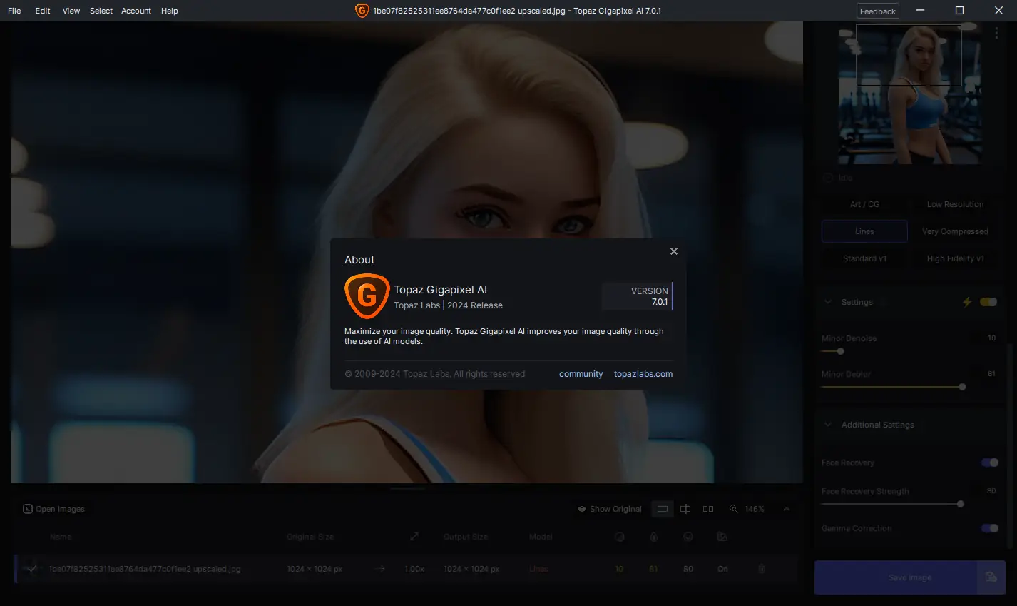Topaz Gigapixel AI — уникальное приложение, использующее возможности искусственного интеллекта для увеличения изображений с сохранением и добавлением естественных деталей, достигая высокого качества восстановления. Оно работает с различными типами изображений и позволяет получать профессиональные результаты без ущерба для реалистичности.