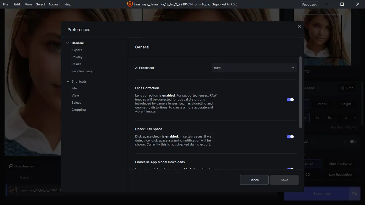 - Использование технологии Face Recovery AI для восстановления мелких деталей лиц с низким разрешением.