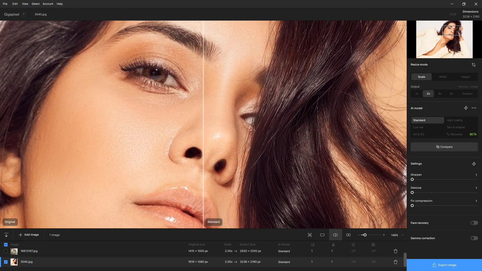 Использование искусственного интеллекта позволяет достигать впечатляющих результатов при масштабировании изображений, сохраняя их естественные детали и текстуры. Программа отлично подходит для профессионального использования, подготовки принтов и восстановления старых фотографий.