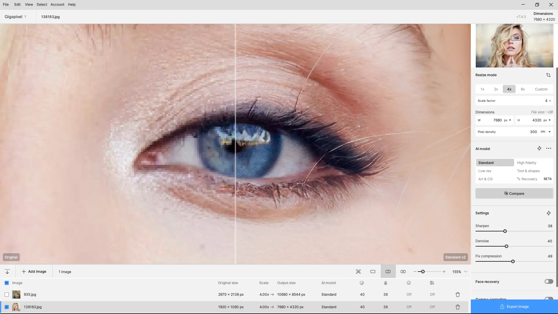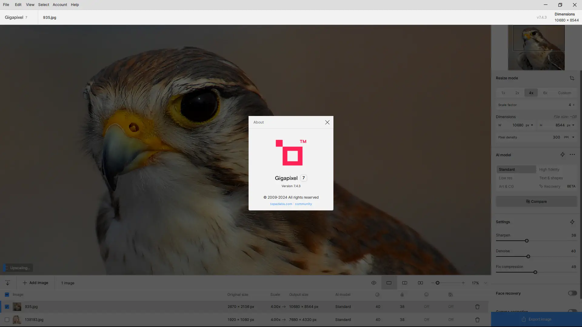 Программа Topaz Gigapixel AI использует технологии глубокого обучения и нейронные сети для масштабирования изображений. За счёт обучения на миллионах примеров различных объектов и текстур она способна восстановить и добавить естественные детали, которые обычно теряются при простом увеличении. Это позволяет создавать впечатляющие изображения высокого разрешения, идеально подходящие для печати, коммерческих проектов или профессиональной обработки фотографий. Особенность приложения — улучшение лиц с низким разрешением с помощью Face Recovery AI, а также возможность работы с низкокачественными сжатым изображениями, автоматически удаляя артефакты и шумы.
