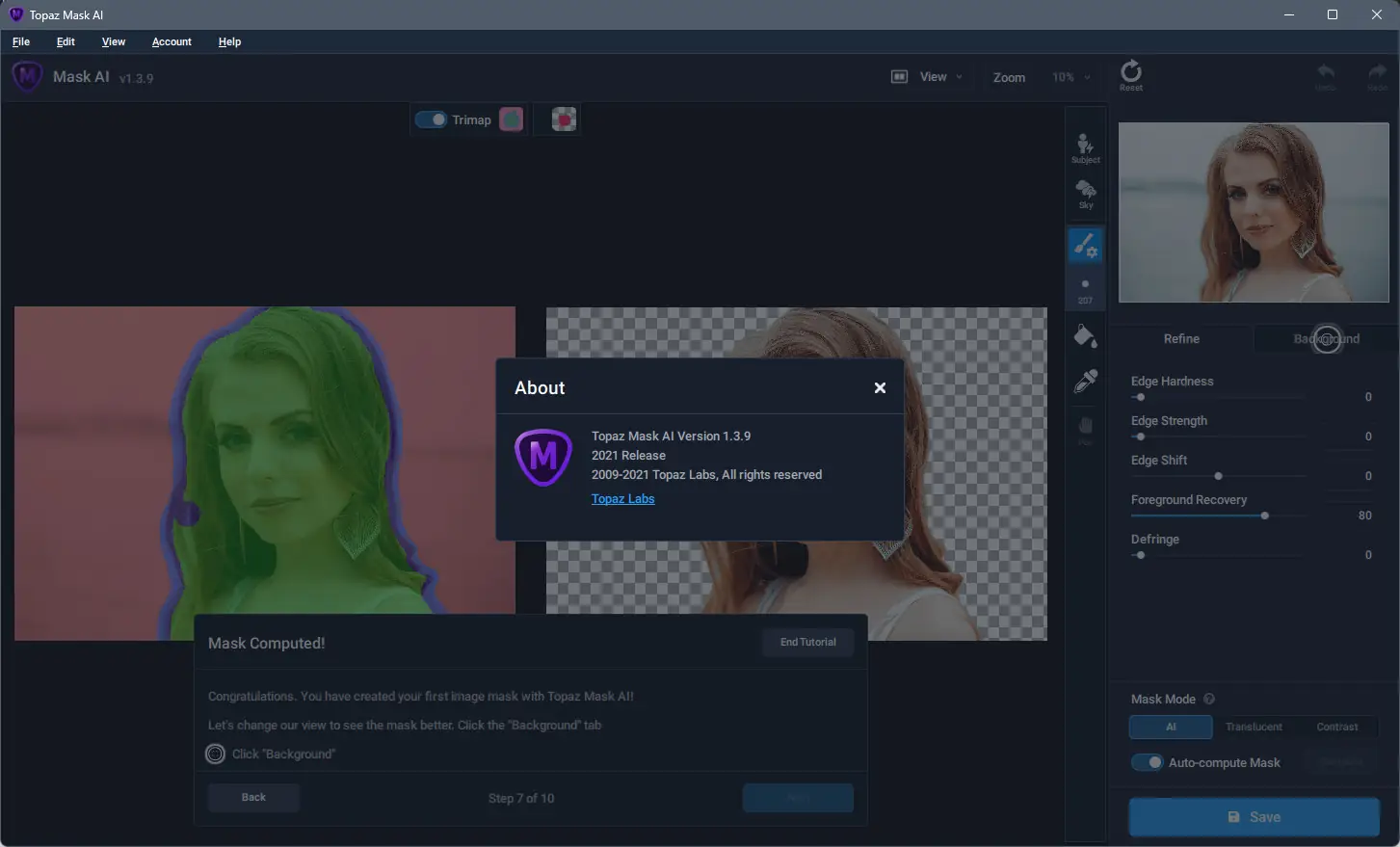 Topaz Mask AI — современное решение для профессиональной маскировки на фотографиях, позволяющее создавать сложные выделения вручную и их автоматическую обработку за рекордно короткое время. Благодаря интуитивной технологии машинного обучения и уникальной системе Trimap, программа значительно сокращает затрачиваемое время и минимизирует необходимые пользовательские усилия при получении высококачественных масок. Пользователю не требуется изучать сложные инструменты или писать множество кистей — достаточно приблизительно обозначить объект и запустить вычисление, а программа сделает всё остальное.