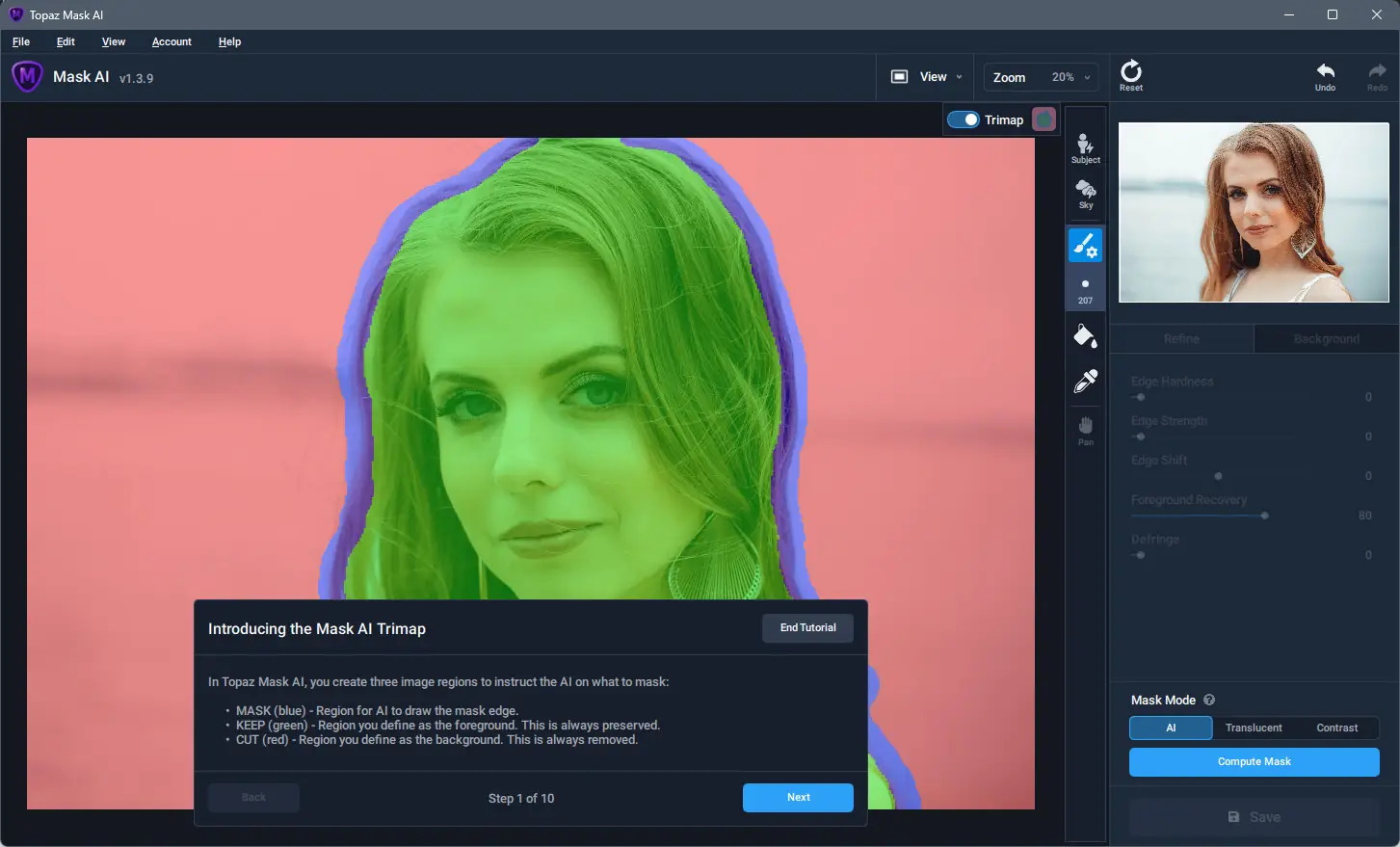 - Интуитивное создание масок с помощью системы Trimap, требующей минимального пользовательского ввода