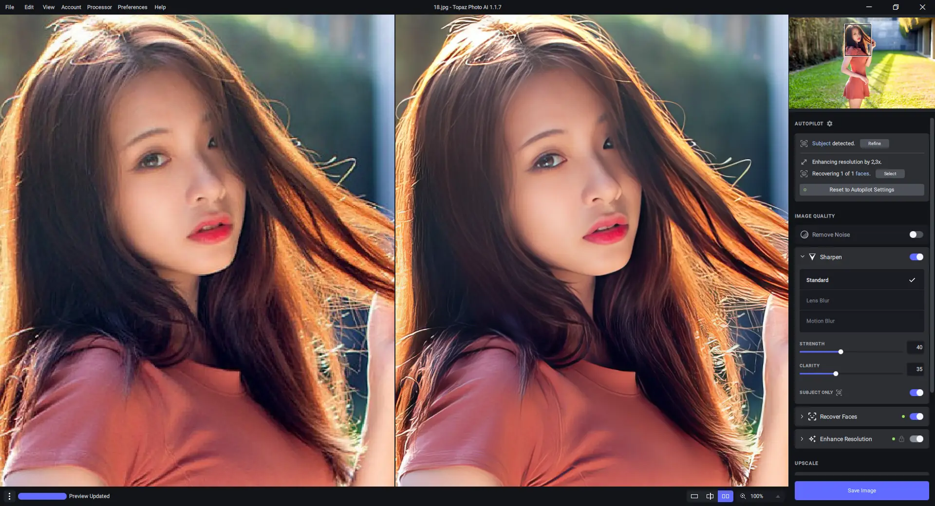 Функционал программы включает автоматический режим автопилота, который обнаруживает проблемы в изображениях и применяет наиболее подходящие исправления. Возможна настройка вручную для более точного контроля. Технология помогает сохранять и восстанавливать детали при увеличении размеров фото, а также значительно уменьшать шум и размытость, обеспечивая чёткость и качество конечного результата.