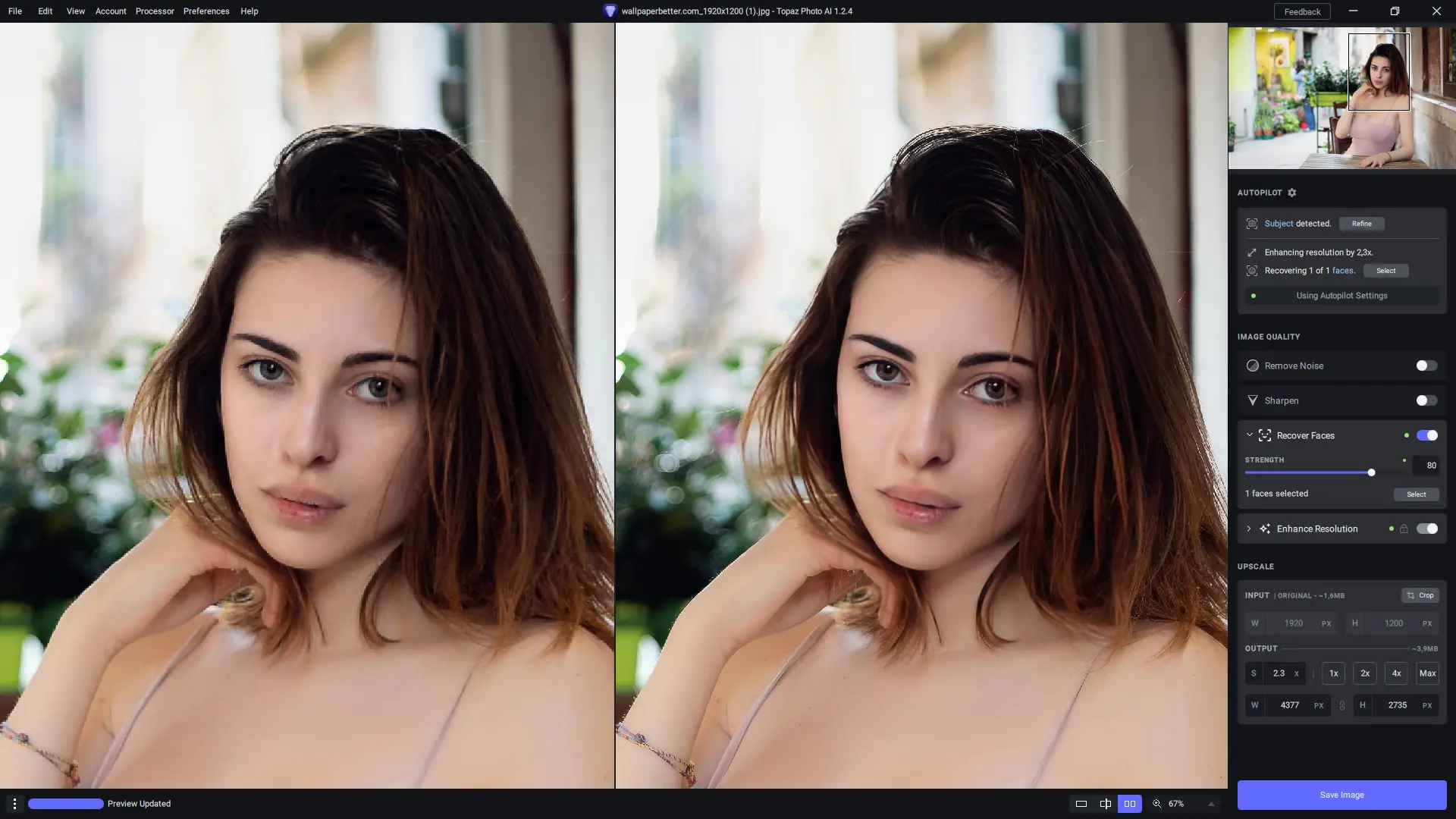 Topaz Photo AI позволяет быстро и эффективно обрабатывать фотографии, значительно повышая их качество и детализацию. В основе инструмента лежит искусственный интеллект, объединяющий возможности Denoise AI, Sharpen AI и Gigapixel AI, что делает рабочий процесс более простым и удобным. Благодаря автоматической и ручной настройке, пользователи получают возможность точно настроить параметры обработки под свои задачи, получая потрясающие результаты без необходимости использования нескольких отдельных программ.
