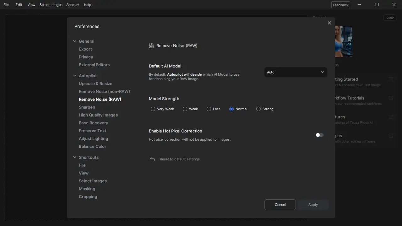 - Автоматическое обнаружение и исправление шумов и размытости с помощью функции Autopilot.