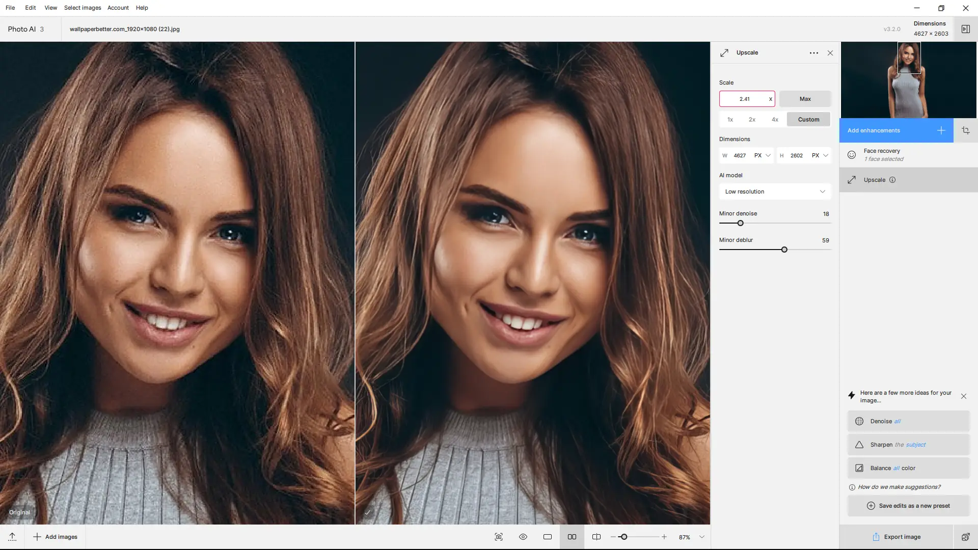 Topaz Photo AI — это мощный инструмент для автоматической обработки фотографий с помощью искусственного интеллекта, объединяющий функции уменьшения шума, повышения резкости и увеличения изображений в одном приложении.