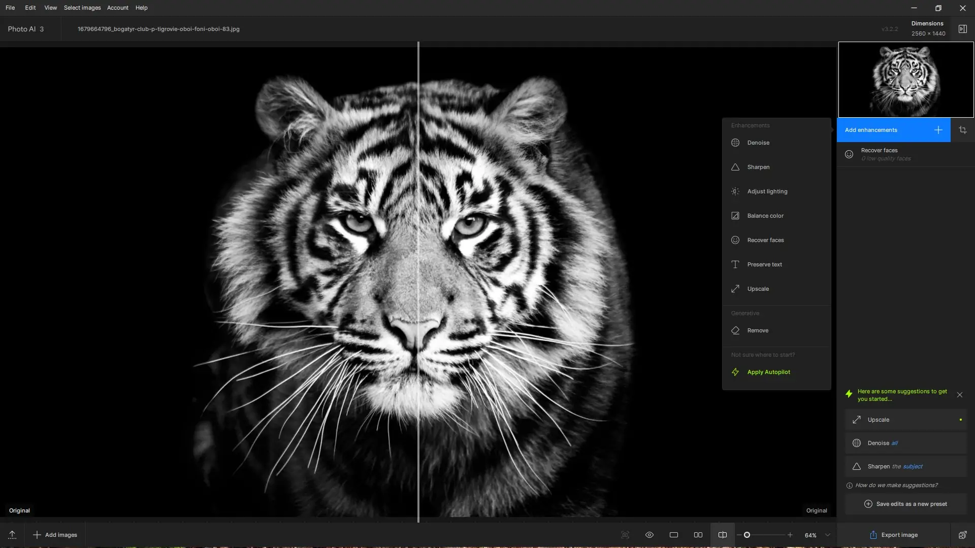 - Увеличение разрешения изображений без потери качества — благодаря интегрированной технологии Gigapixel AI.
