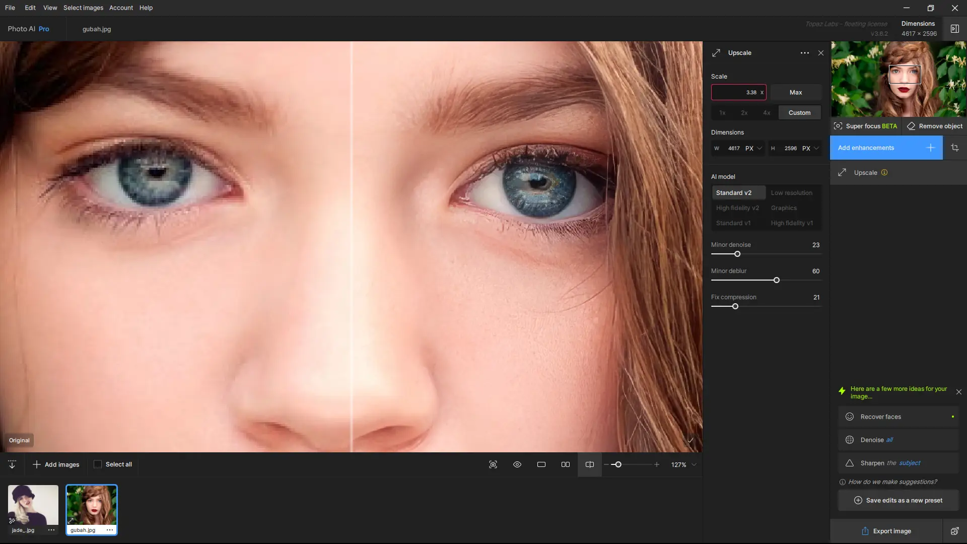- Объединение функций Denoise, Sharpen и Gigapixel в один инструмент