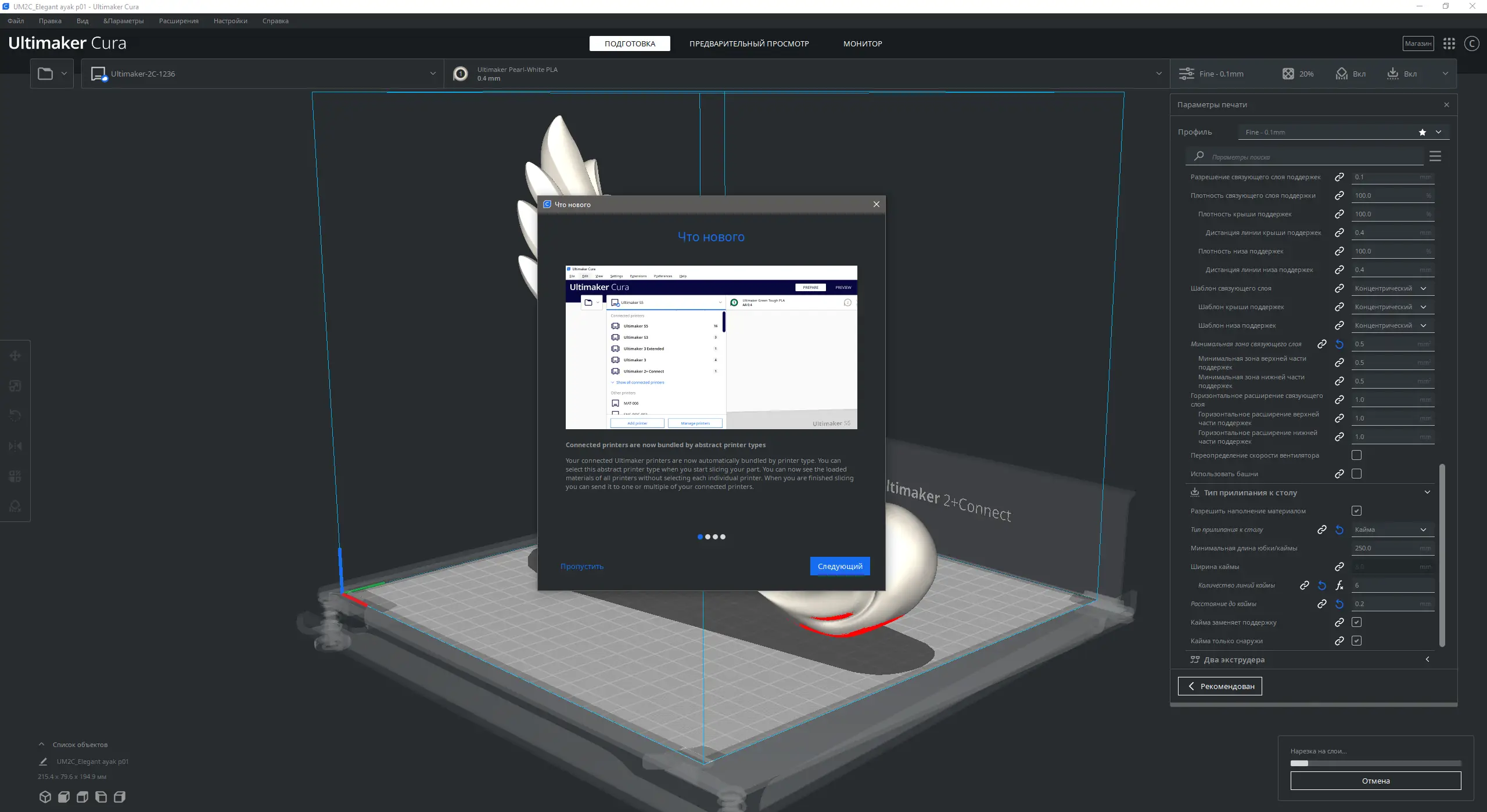 Ultimaker Cura — это популярный слайсер для 3d-печати, идеально подходящий как для начинающих домашних пользователей, так и для небольших офисных работ. Он обладает простым и дружелюбным интерфейсом, а также готовыми шаблонами, что облегчает подготовку моделей к печати. Программа позволяет быстро и качественно подготовить файлы для принтера, обеспечивая отличные результаты даже при минимальных навыках.