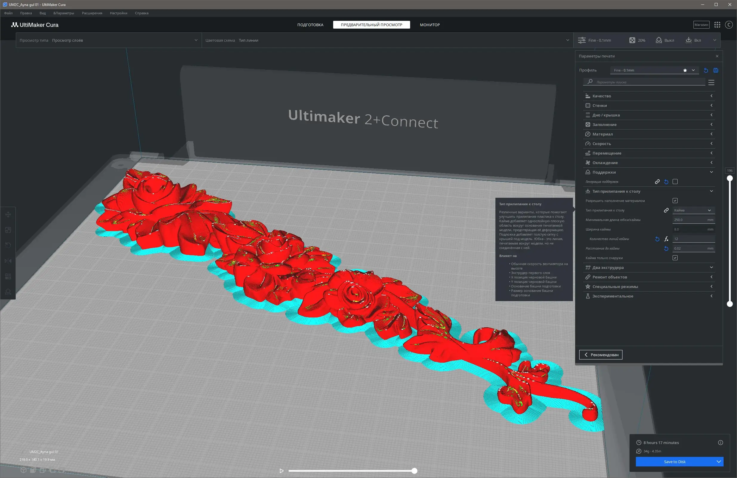 Программа позволяет подготовить модели к печати, автоматизируя процесс создания слоёв и настроек для различных материалов и принтеров. Ultimaker Cura обладает открытым исходным кодом, что способствует постоянному развитию и внедрению новых функций. Пользователи могут легко применять готовые профили и шаблоны для получения высококачественных результатов на устройствах различной сложности.